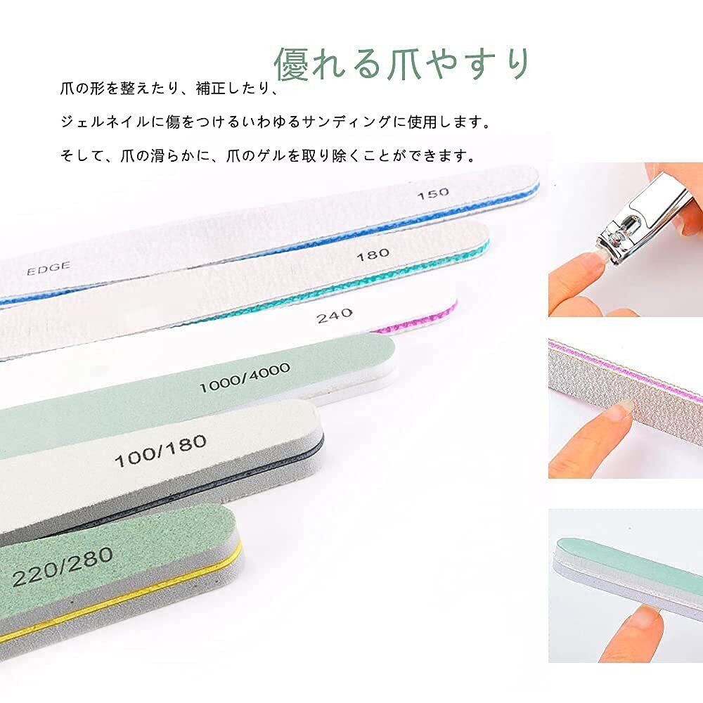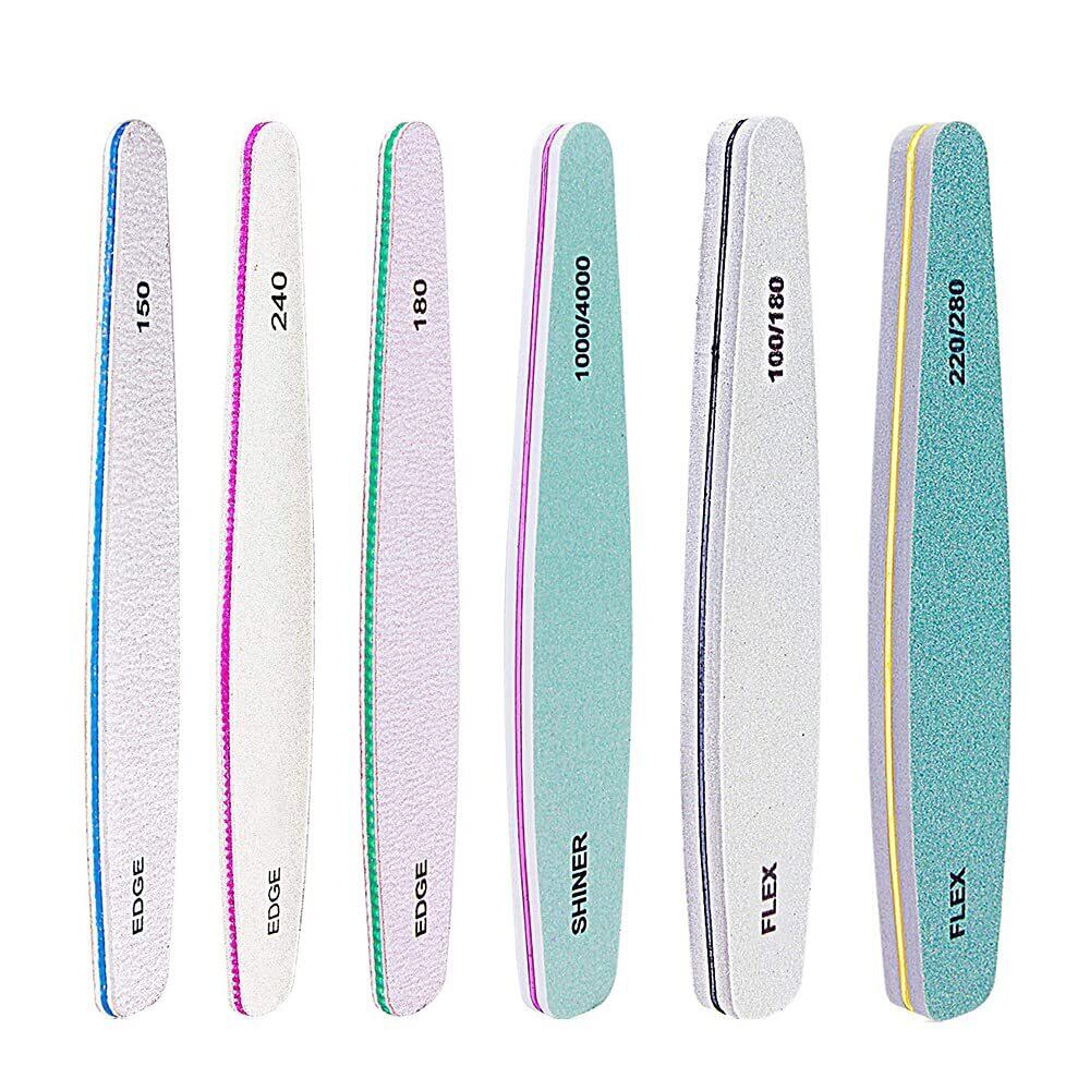 LIKENNY スポンジネイルファイル ジェルネイル ファイル 爪やすり 両面タイプ 爪磨きキューティクル 6本セット(150 180 240 100/180 200/280 1000/4000)