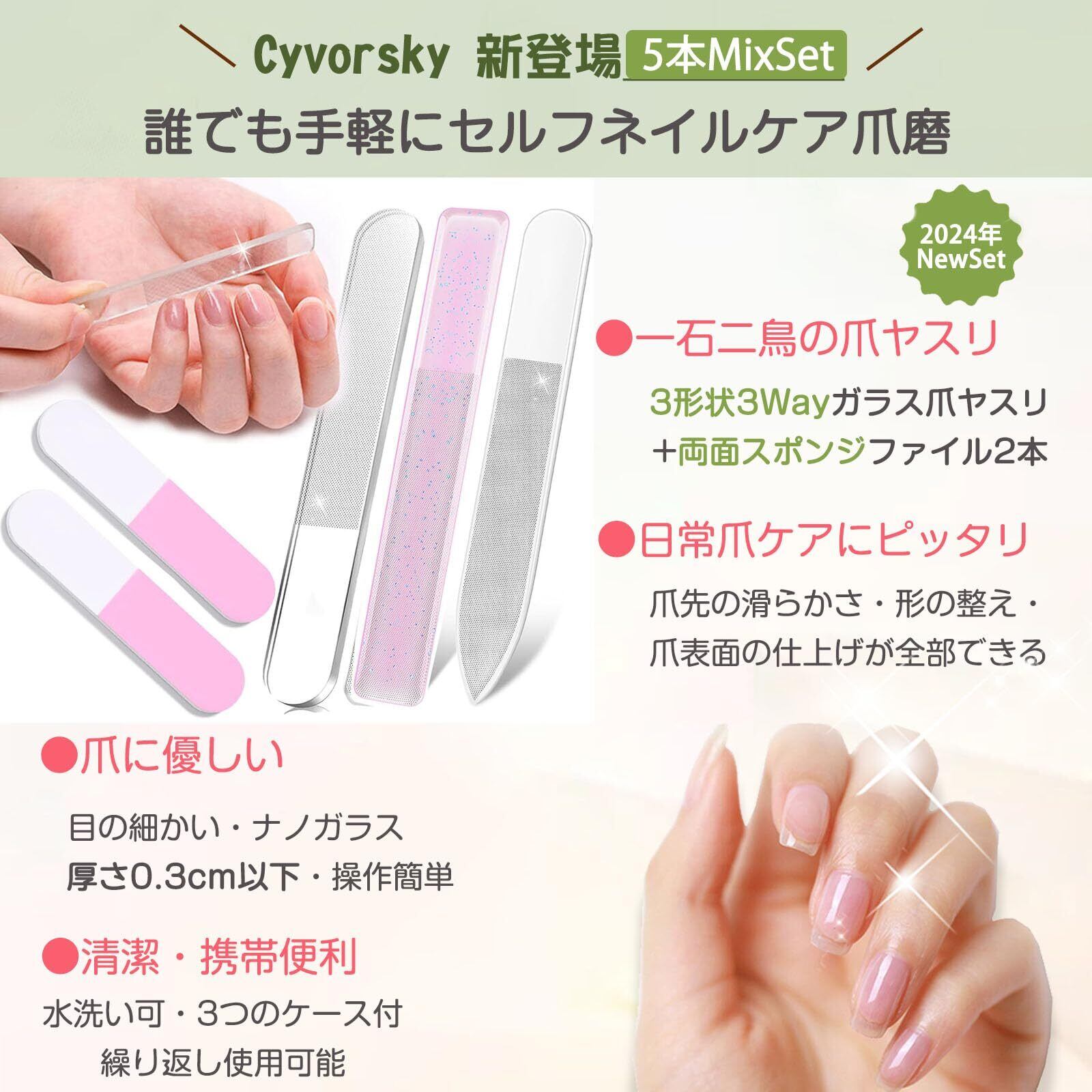 【NEW5本Mix!一石二鳥の爪ヤスリ】ご要望に基づいた開発従来のない!爪に負担かけにくく、形を整えやすいネイルケア組み合わせ:爪をピカピカに仕上げる【3種3Wayガラス爪ヤスリ】①形の整えやすいシャープ型②定番のラウンド型③よく使えるスクエア型+日常使いにたっぷり【両面スポンジファイル2本】。これで日常のネイルケアにピッタリ!お好みに応じて使い分け、手軽にネイルケアを楽しめよう。