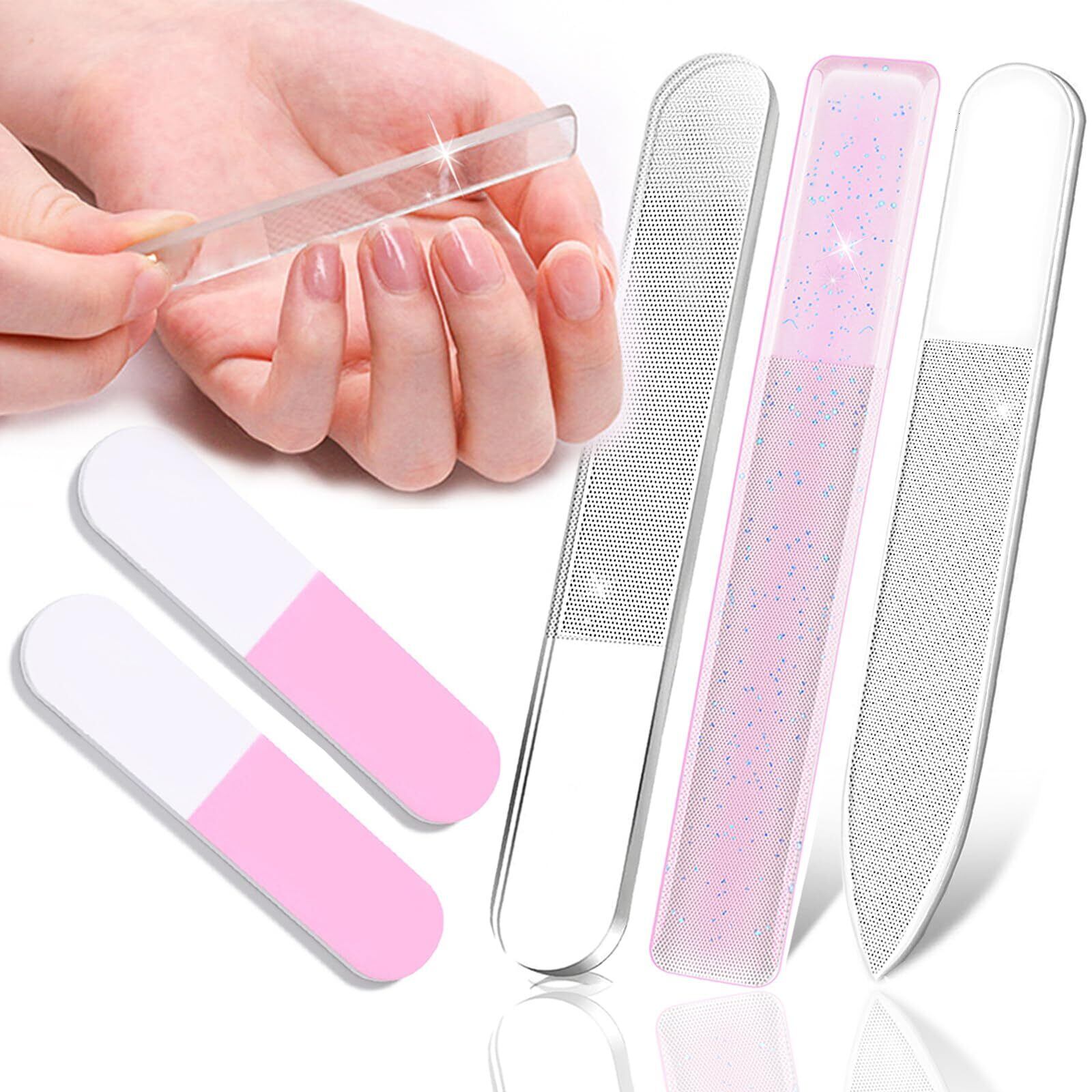 【2025年プロ推薦・おトク5本】爪磨き 爪やすり ガラス 精密ナノ技術 すぐ艶出しピカピカ爪が簡単実現!【人気3種ガラス爪ヤスリ&両面スポンジファイル2本・収納ケース付】爪先/爪形/爪表面整えつめやすり ガラスシャイナー ネイルファイル 爪ケア つや出しネイルケアセット 男女兼用 携帯便利 nail file