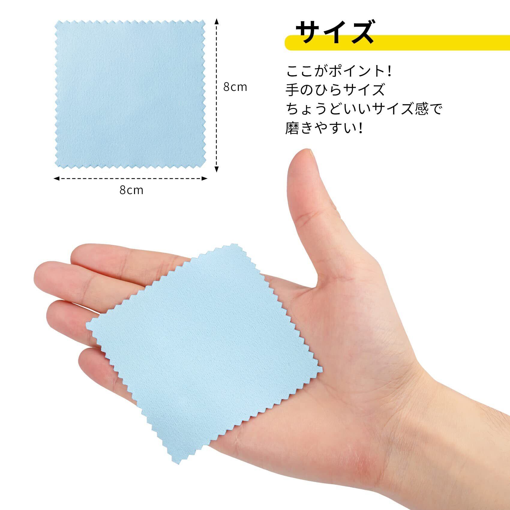 コンパクトサイズ:8x8cm/10枚入り。シルバーポリッシュクロスは手のひらサイズで使いやすい大きさで、軽くて持ち運びができます。指輪・ネックレスなど小物向けで、大型の銀食器や強い汚れには向きません