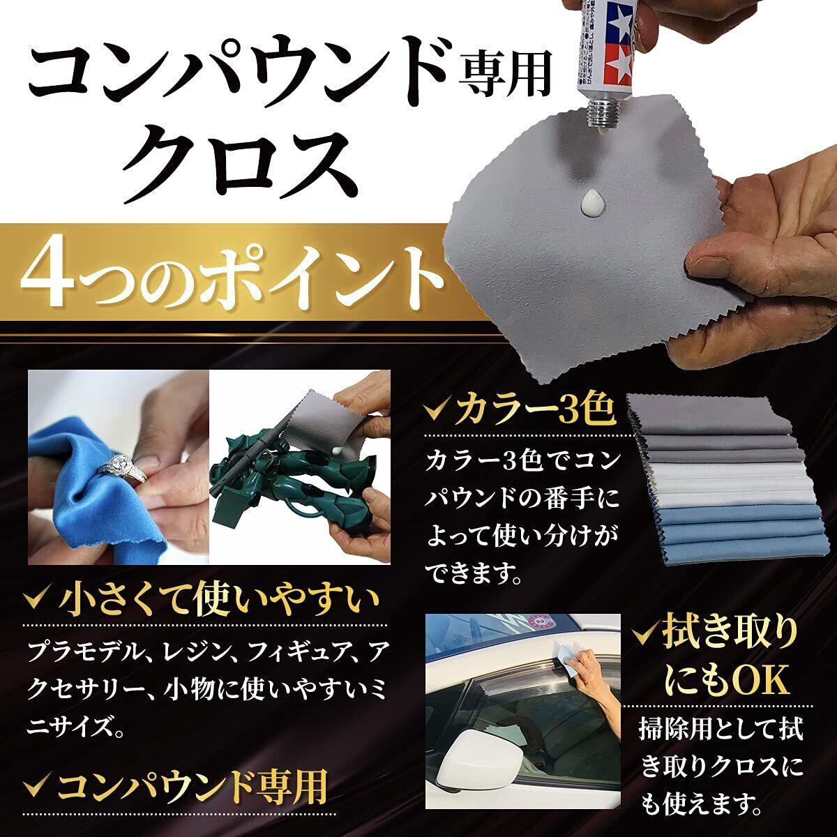 ミニサイズ コンパウンド専用みがきクロス ホビー用 3色 3枚ずつ 合計9枚 コンパウンド用クロス コンパウンドを使った研磨・ツヤ出し作業に ふき取りにも