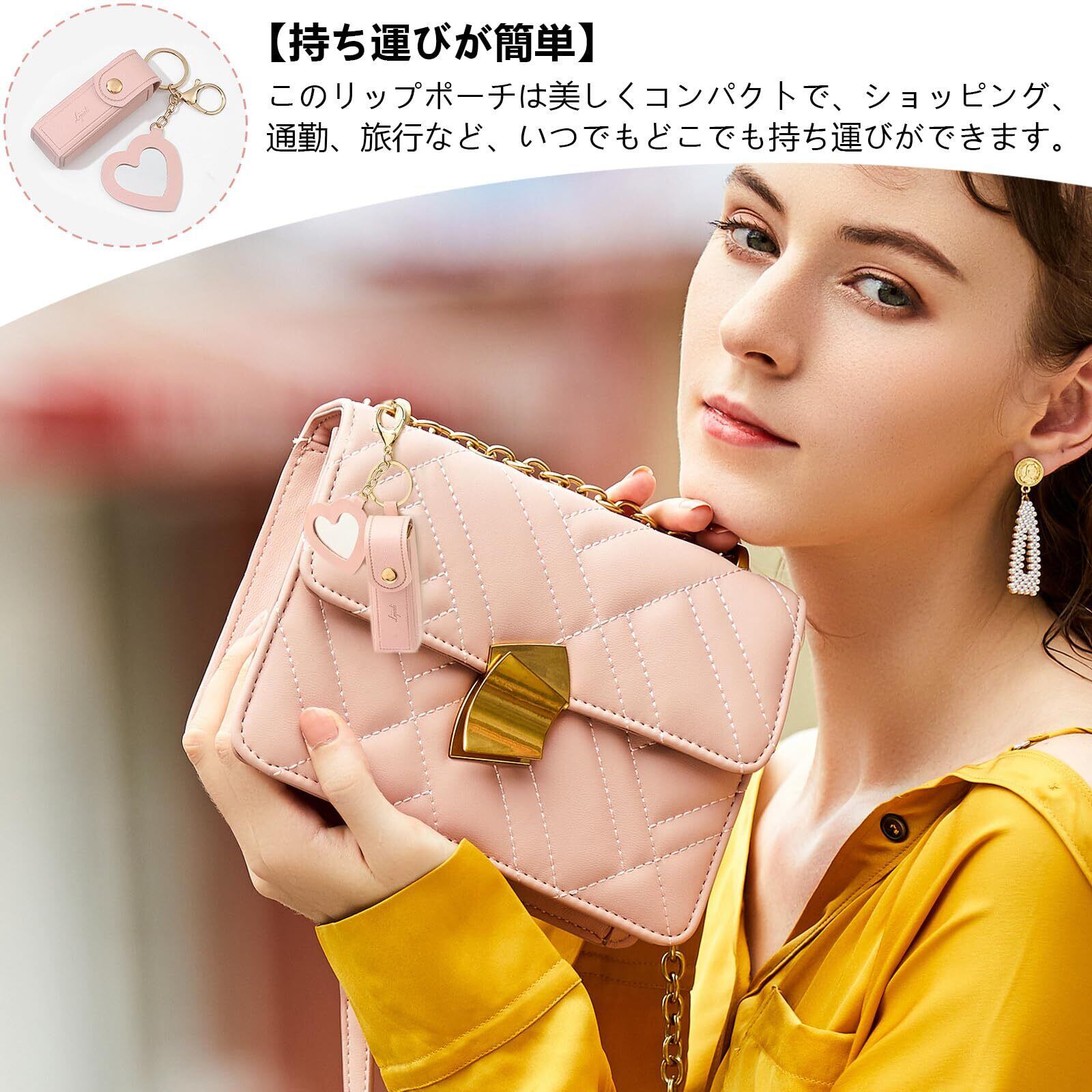 【持ち運びが簡単】このリップポーチは美しくコンパクトで、ショッピング、通勤、旅行など、いつでもどこでも持ち運びができ、愛用の口紅をいつも手元に置いて、いつでもメイクアップの必要性に対応できます。
