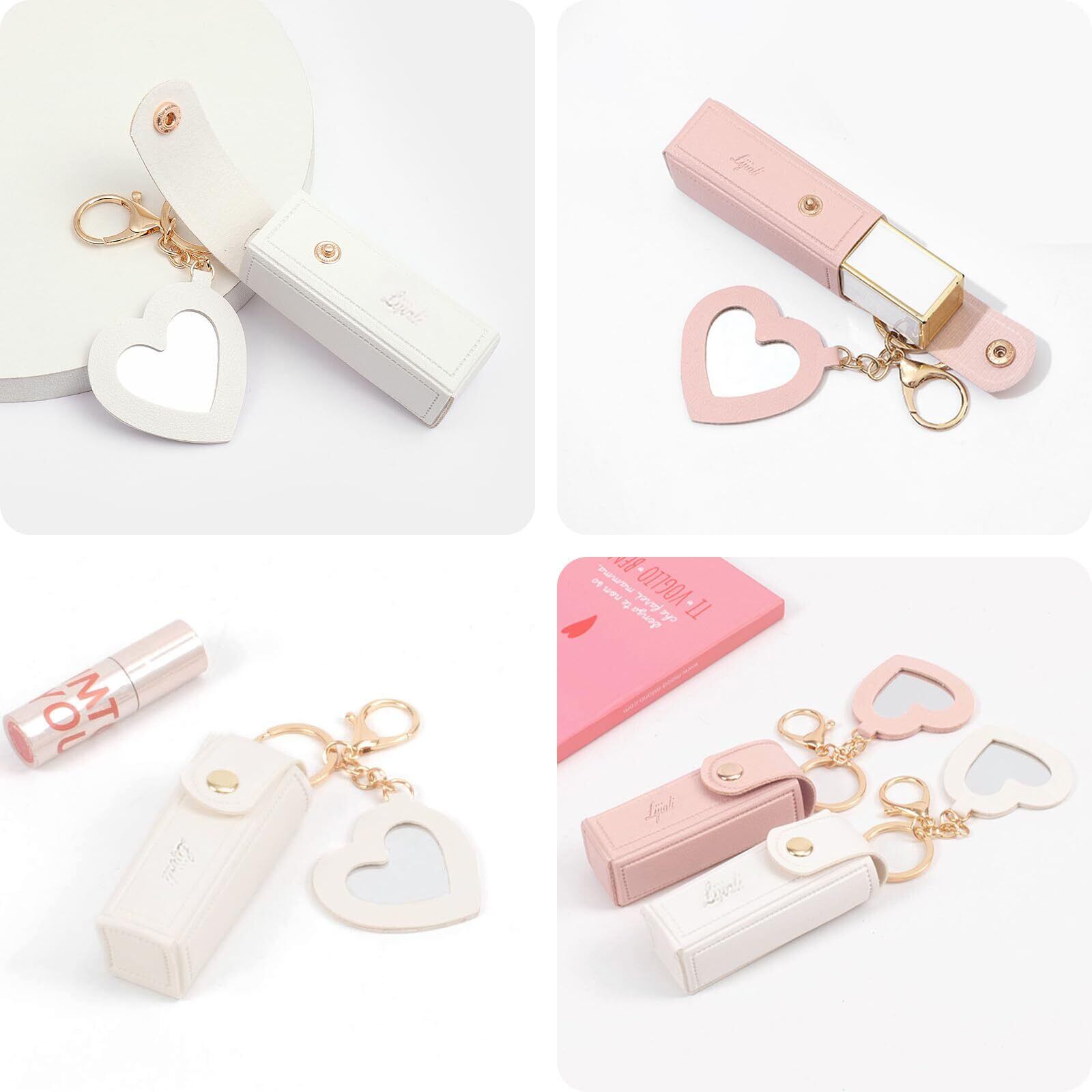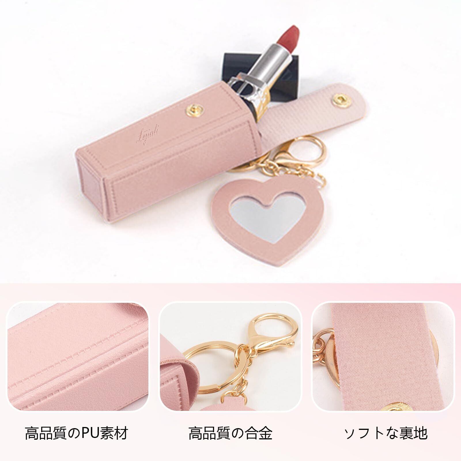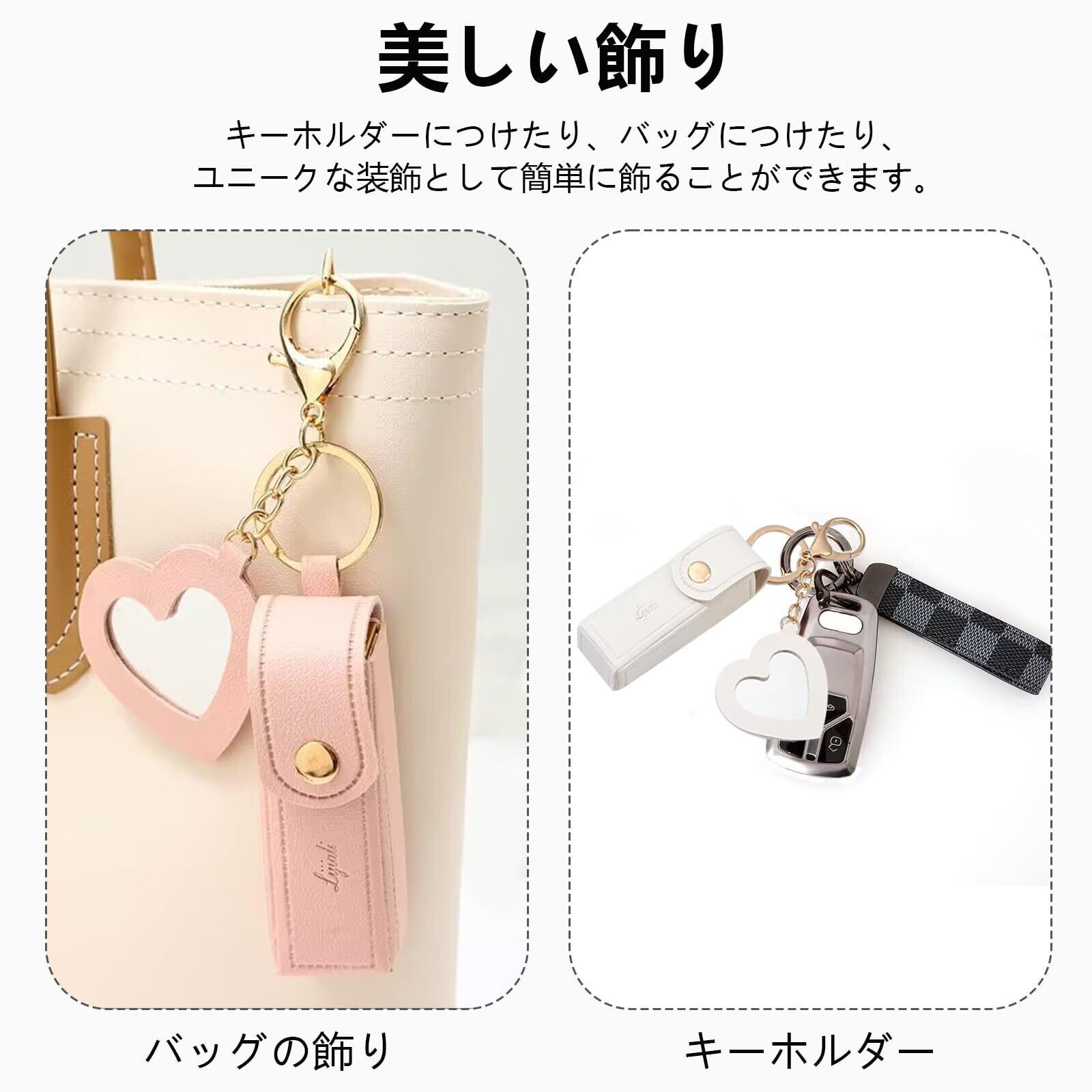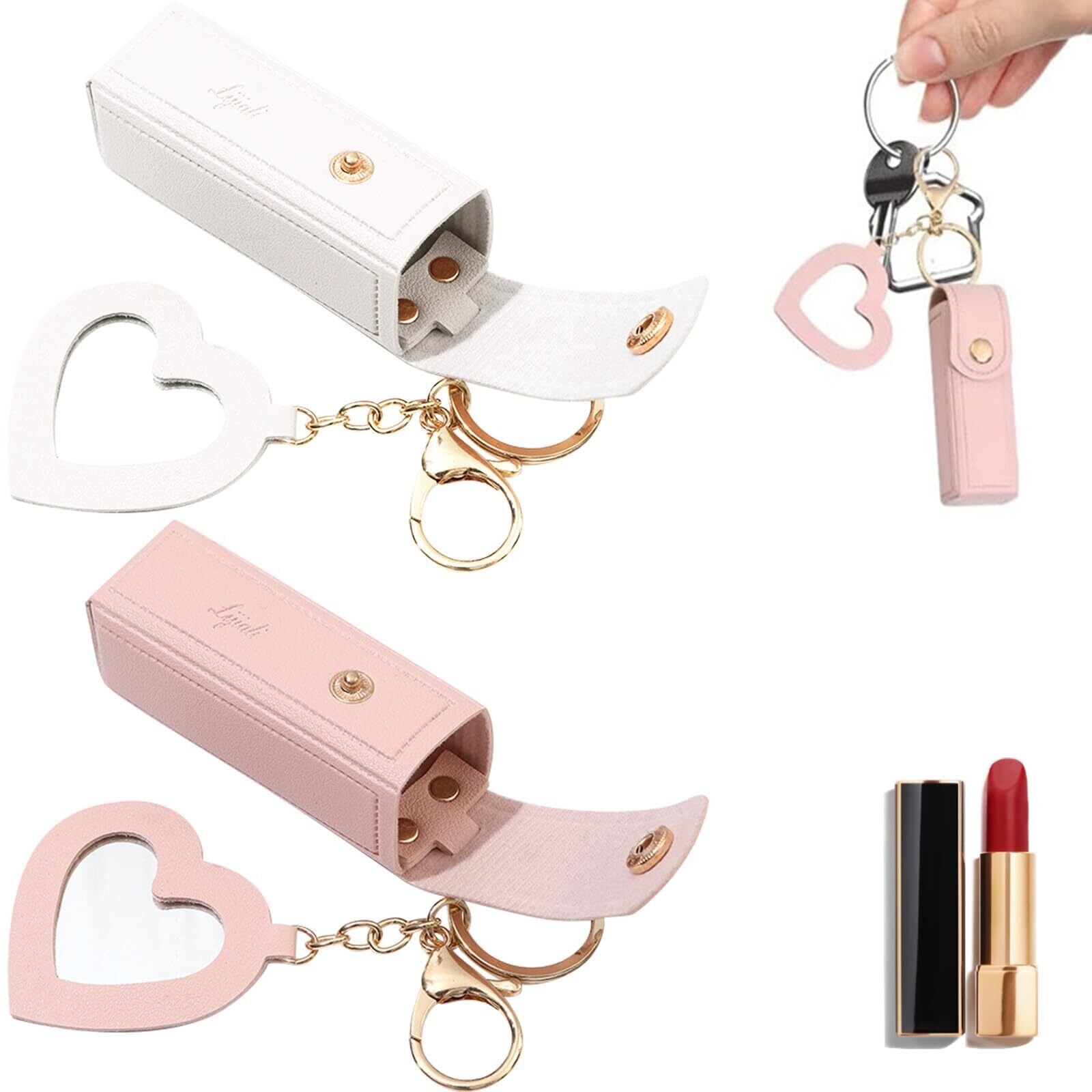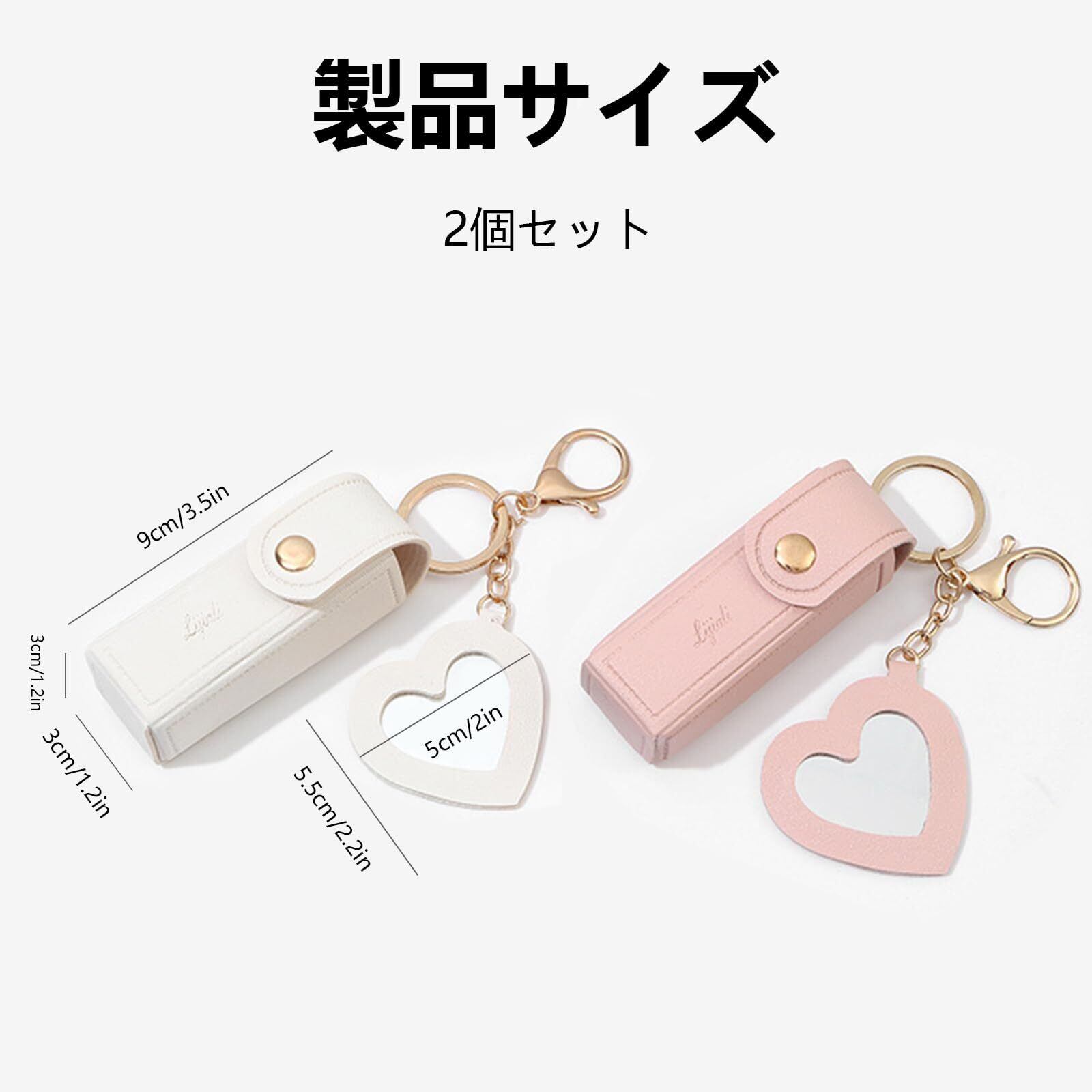 [Seiunn] リップケース リップホルダー 【2個セット】 リップポーチ ミニ口紅バッグ キーホルダー 可愛い オシャレ 持ち運び便利 バッグ吊り飾り ギフト PUレザー ミラー付き (ホワイト+ピンク)
