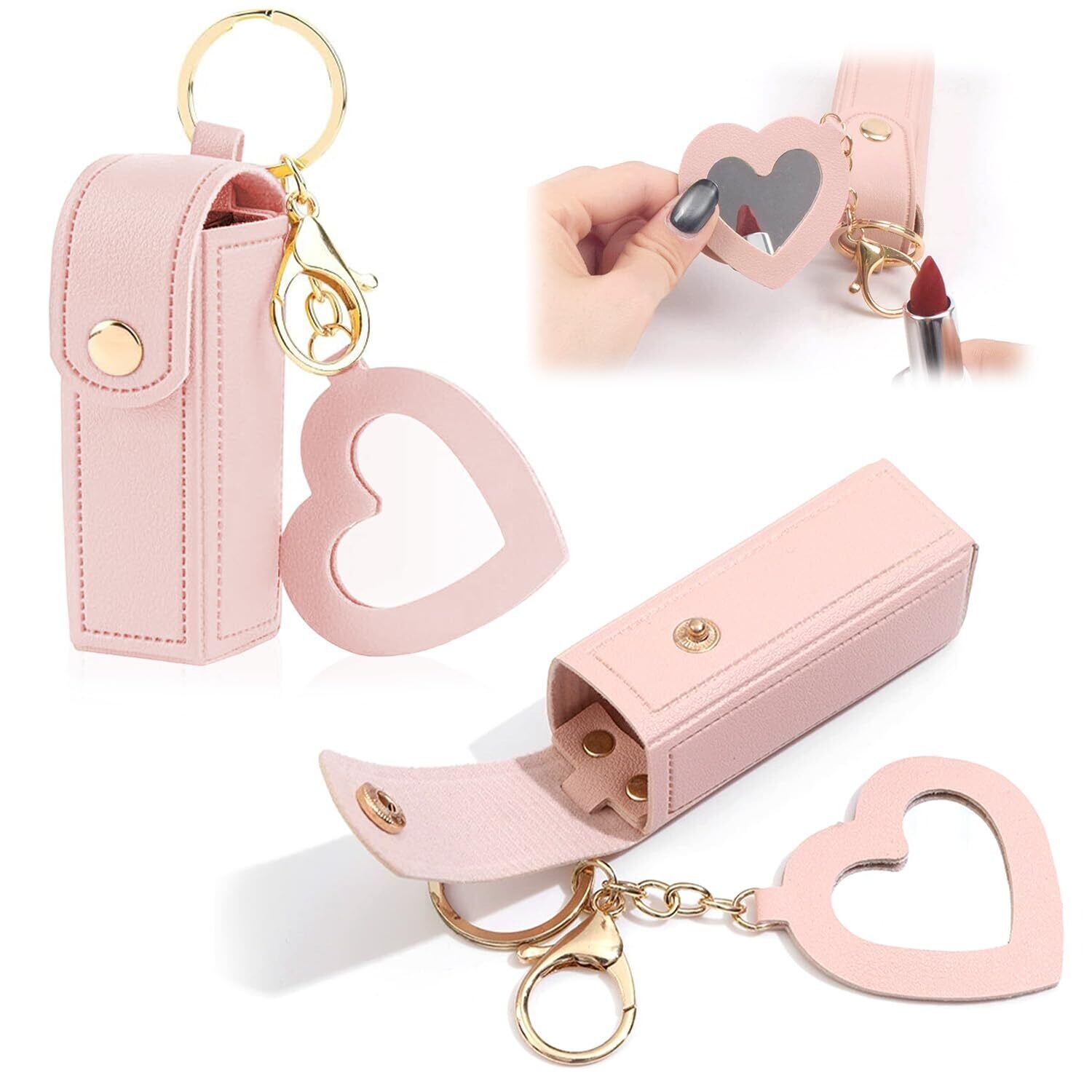 リップケース リップポーチ 2個入り PUレザー 化粧品袋 ギフトコインケース 収納バッグ メイクアップミラー付き 持ち便利 (ピンク)