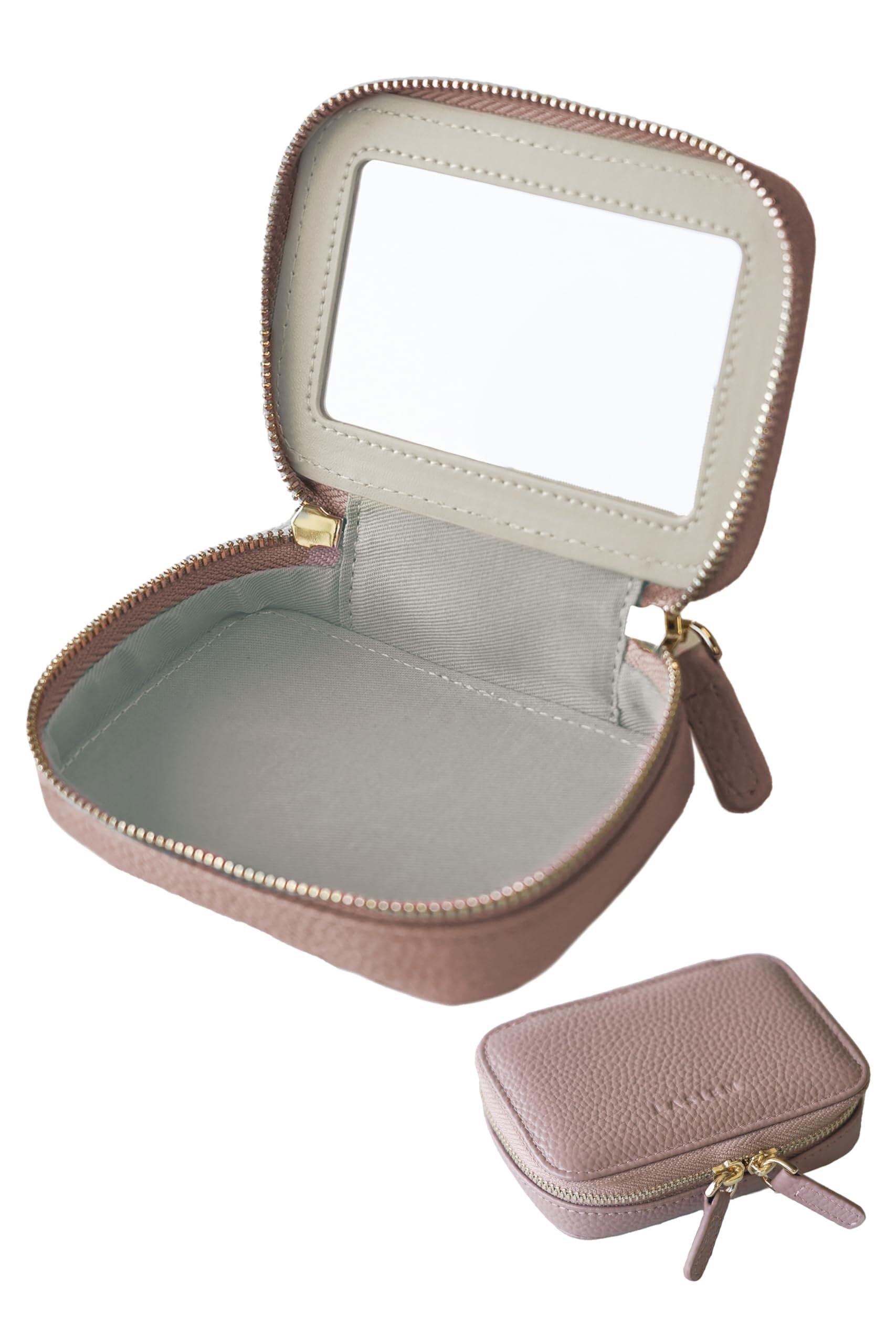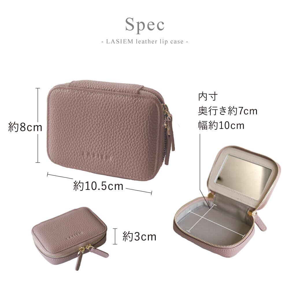LASIEM(ラシエム) 【本革×ミラー付き】 リップケース ミラー付き 化粧ポーチ 小さめ メイクポーチ 口紅 収納 リップクリームケース 小物入れ ミニポーチ 3本収納 ピンク 桃色