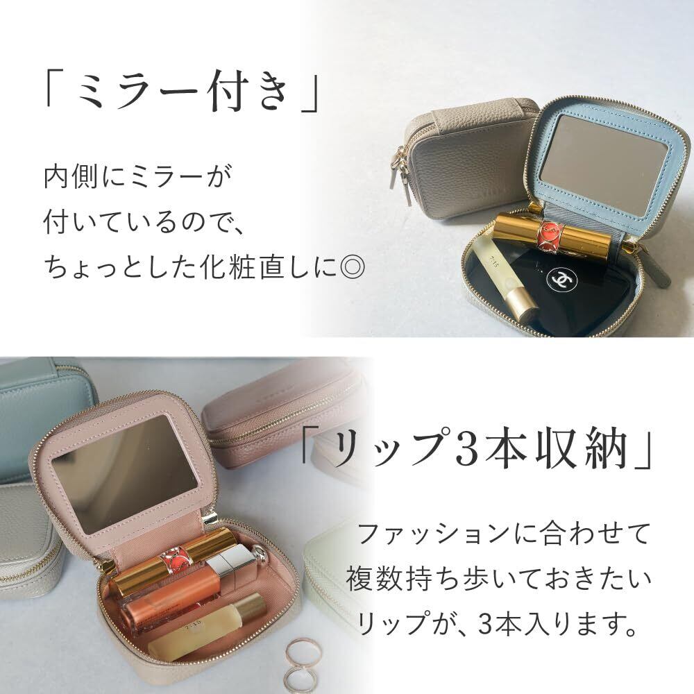 【ミラー付き】内側にミラーが付いているので、ちょっとしたお化粧直しに◎ 【リップ3本収納】ファッションに合わせて複数持ち歩いておきたいリップが3本入ります