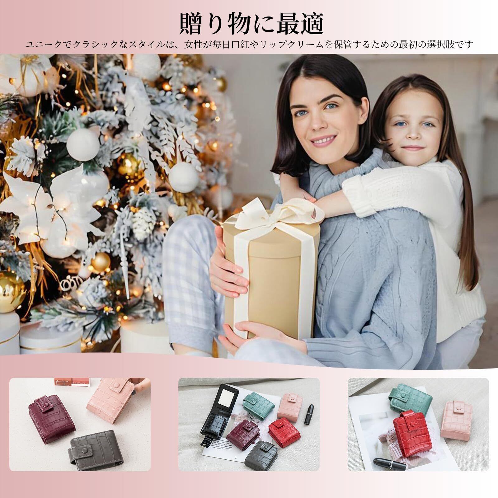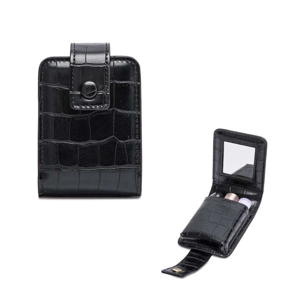 FLORPERRY 口紅ケース ミニ口紅バッグ リップケース リップグロスポーチ 小物入れ 化粧バッグ ミラー付き 女性用 化粧ポーチ レディース リップ 収納 メークポーチ 鏡付けリップ収納ケース ブラック