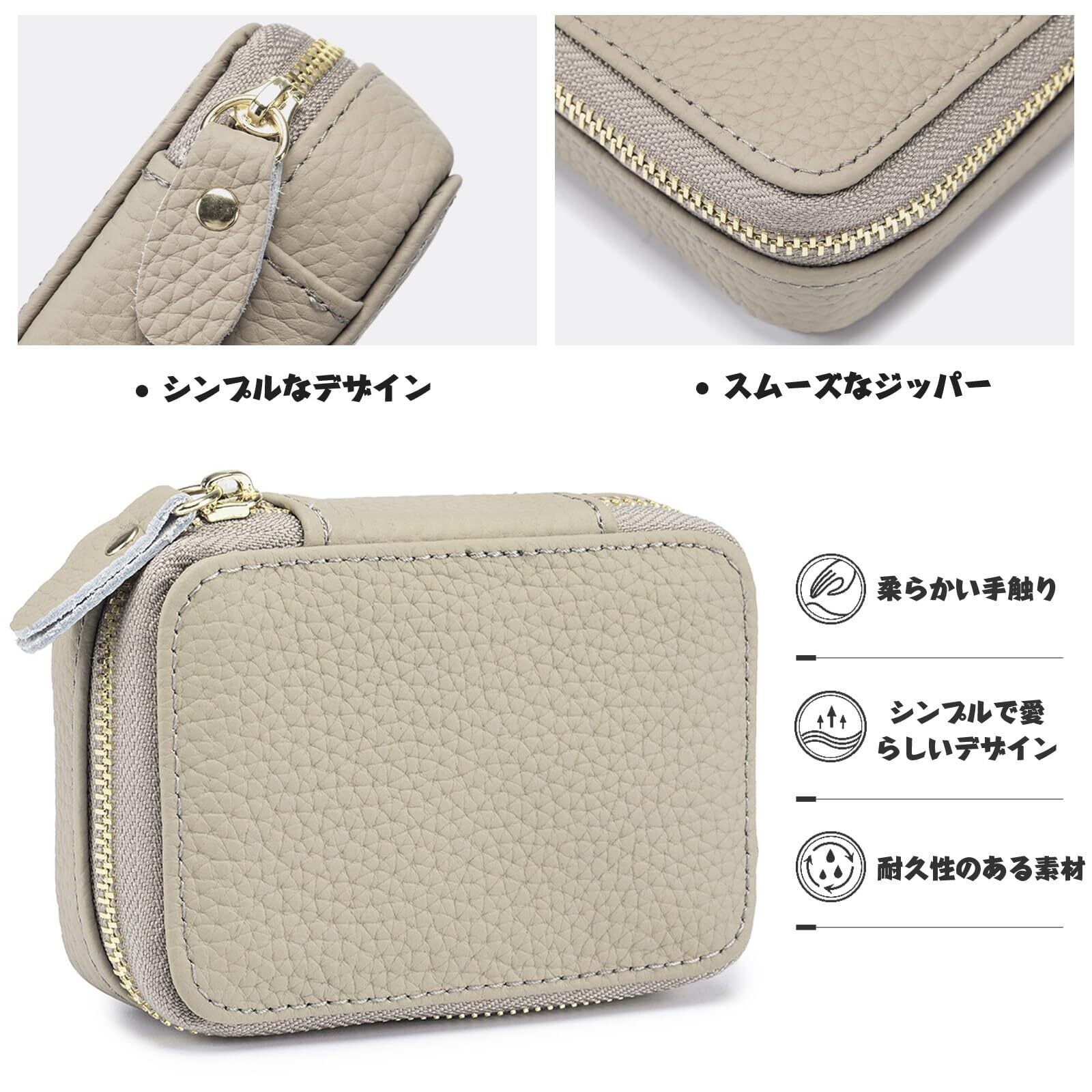 Ganve リップケース 鏡付き 本革 ミラー付き ケース 牛革 ミニ 口紅ケース 口紅入れ コンパクト アクセサリーケース 旅行 化粧ポーチ 持ち運び 小さめ メイクポーチ 小物入れ ポーチ レディース 可愛い おしゃれ 女性用 雑貨 プレゼント 母の日 プレゼント コインケース 小銭入れ グレー