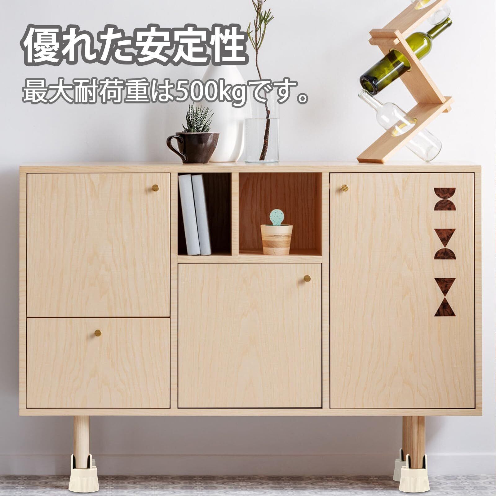 【安定性】500kgの荷重がかかっても変形しやすくないで、優れた安定性があります。底面は耐摩耗性があったフェルト素材で加工されたので、床との摩擦力を増やし、滑りを防ぐことができるだけではなく、家電製品・家具の跡や傷から床も守ります。