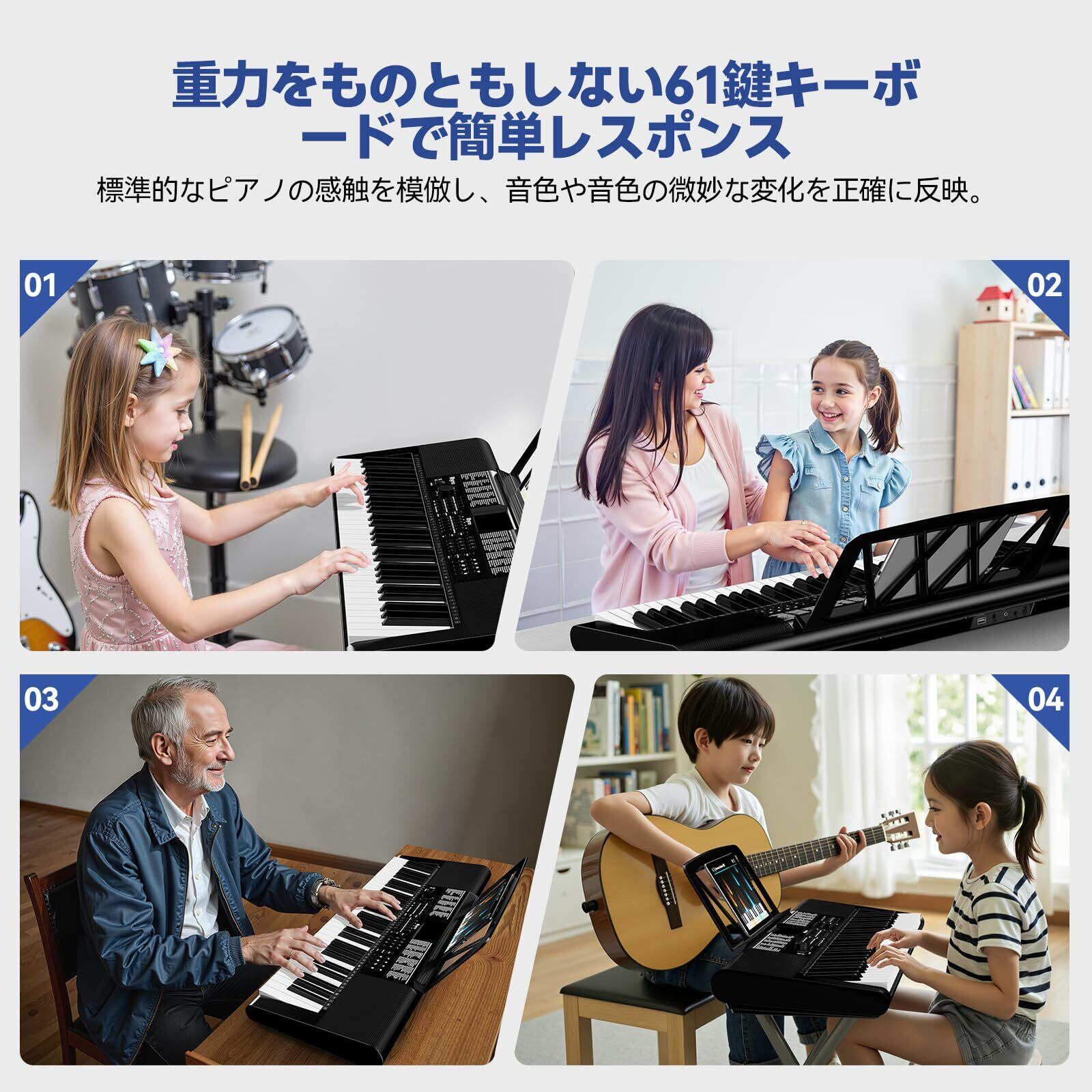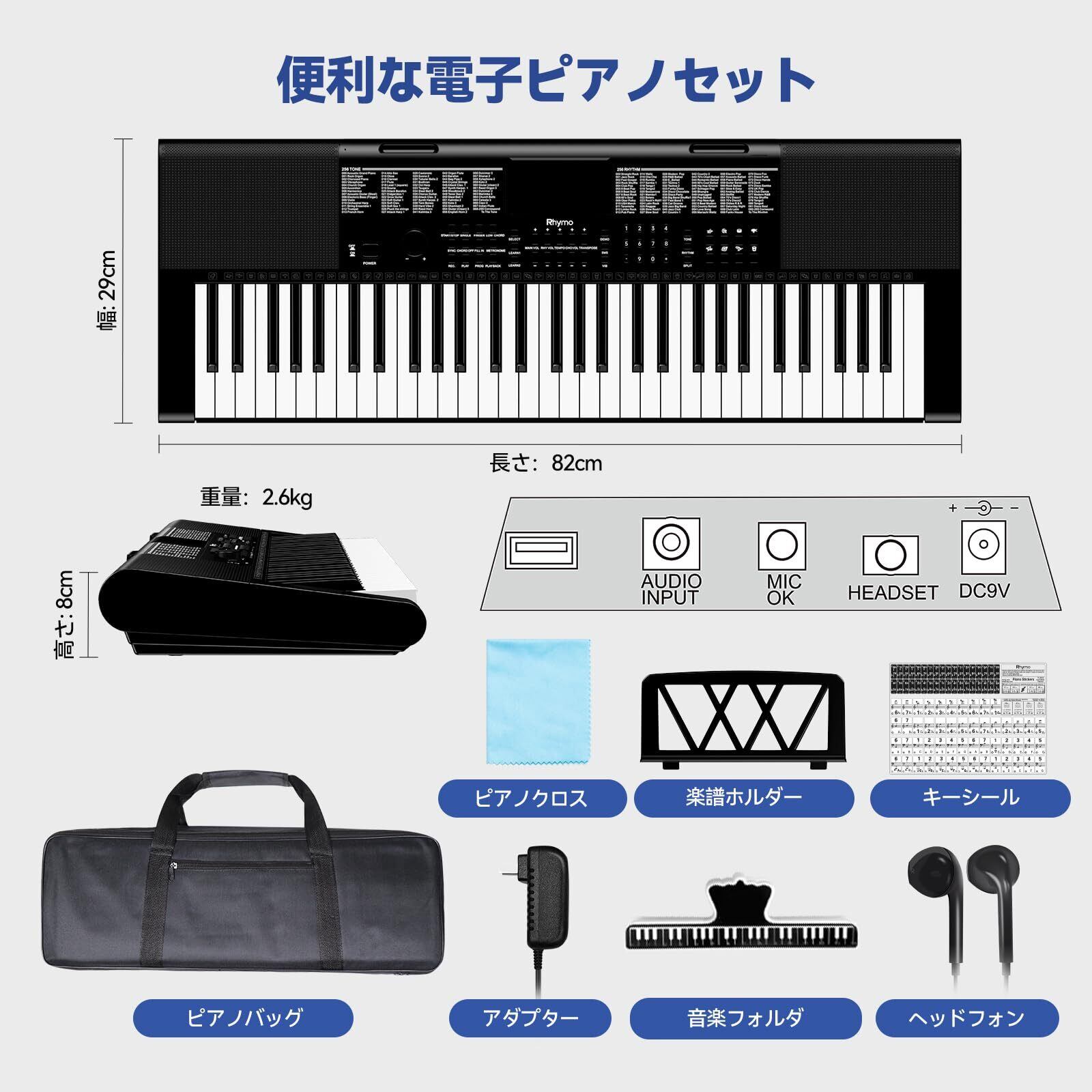 RHYMO 電子ピアノ 61鍵 初心者向け 電子ピアノ 子供用 メトロノーム/録音/レッスンモード搭載 マイク&イヤホン対応 携帯便利 日本語説明書付き