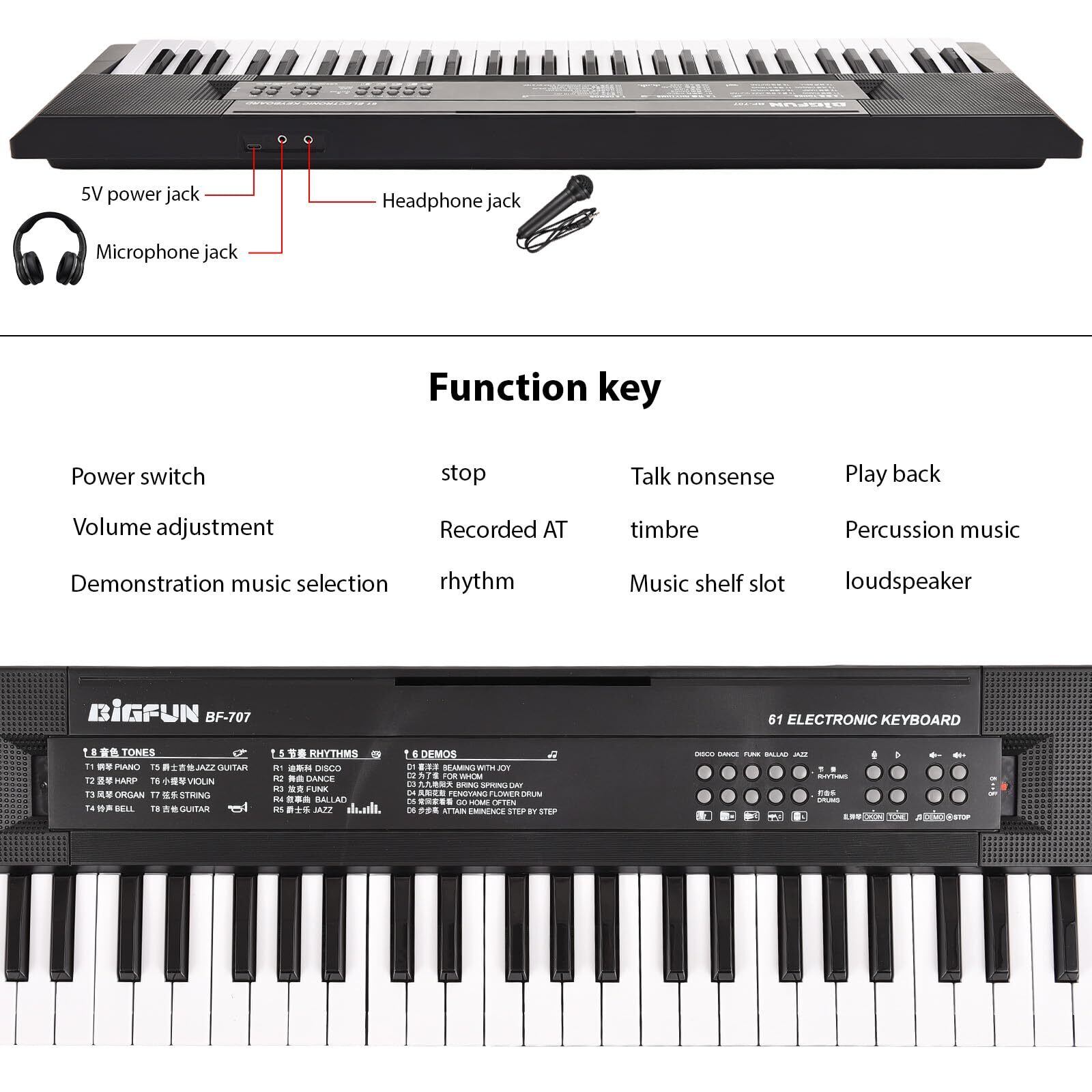 Btuty 61キー電子キーボードピアノデュアルスピーカー8トーン5リズム5ドラムパーカッション6デモマイク付き楽器2パワーモード音楽ピアノキーボード初心者向け