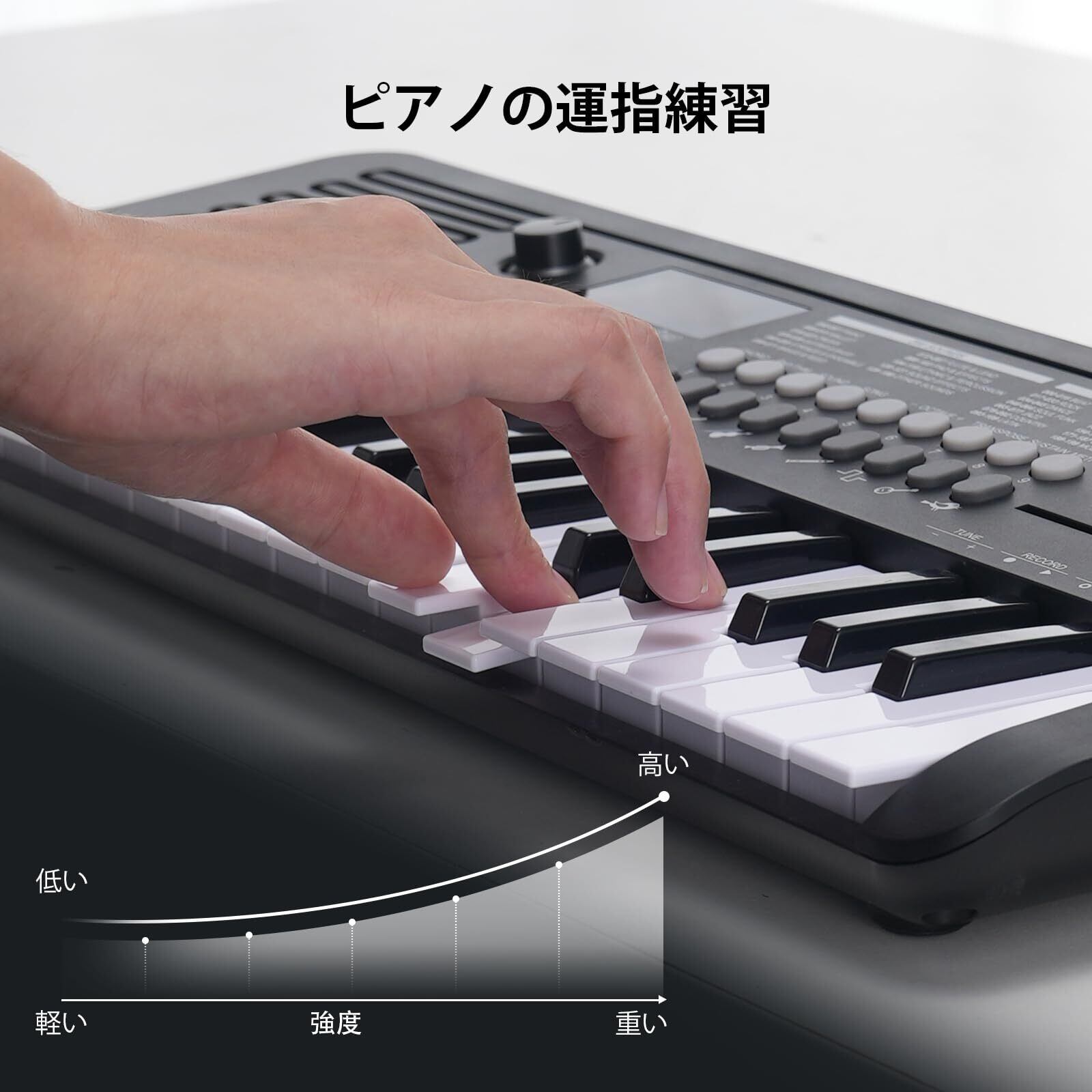 【ピアノの運指練習】MK-2ミニキーボードピアノには重みのあるキーをシミュレートする機能があり、キーを強く叩くと音量が大きくなります。この機能は、若いプレイヤーがピアノ演奏の強度を練習するのに非常に役立ちます。