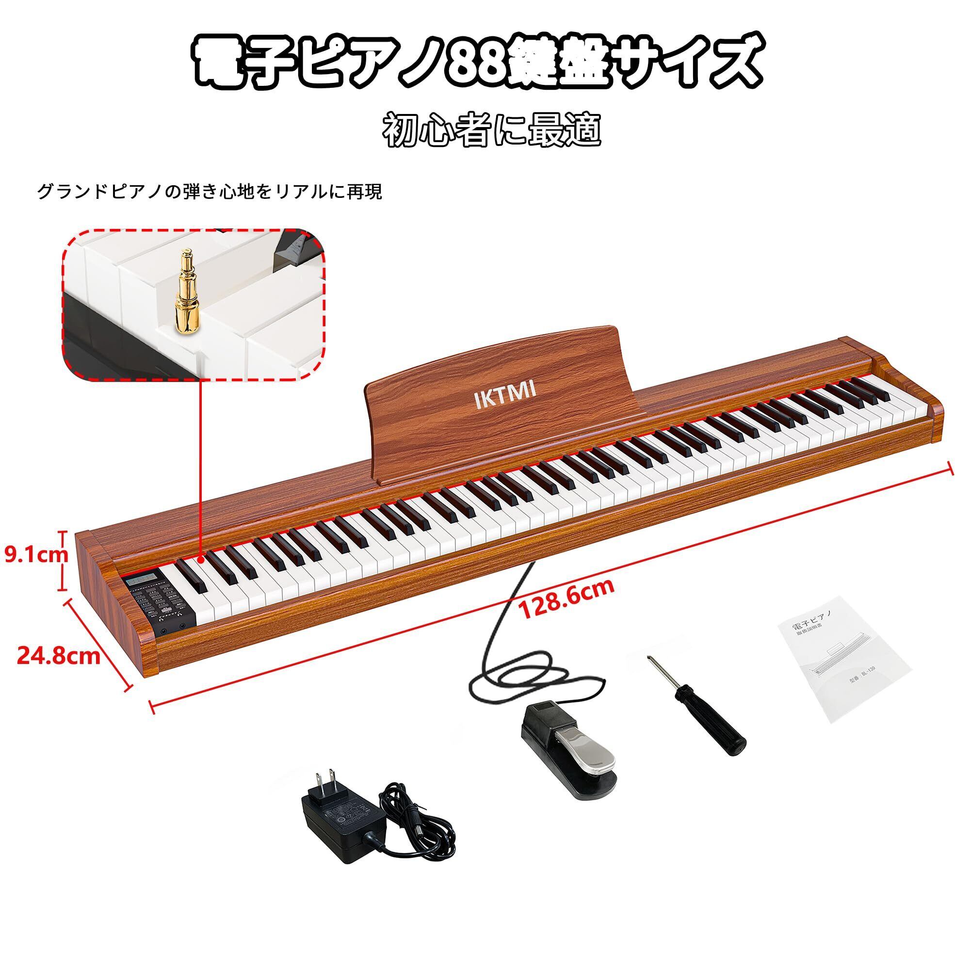 ️【フルサイズ88鍵盤電子ピアノ】アコースティックピアノをシミュレートした88鍵電子キーボード。 グランドピアノの代替として最適な鍵盤楽器です。 ピアノ本体、譜面台、シングルペダル、アダプター、日本語説明書 サイズ/約幅128.6cm×奥行き24.8cm×高さ9.6cm/重量7.2kg。