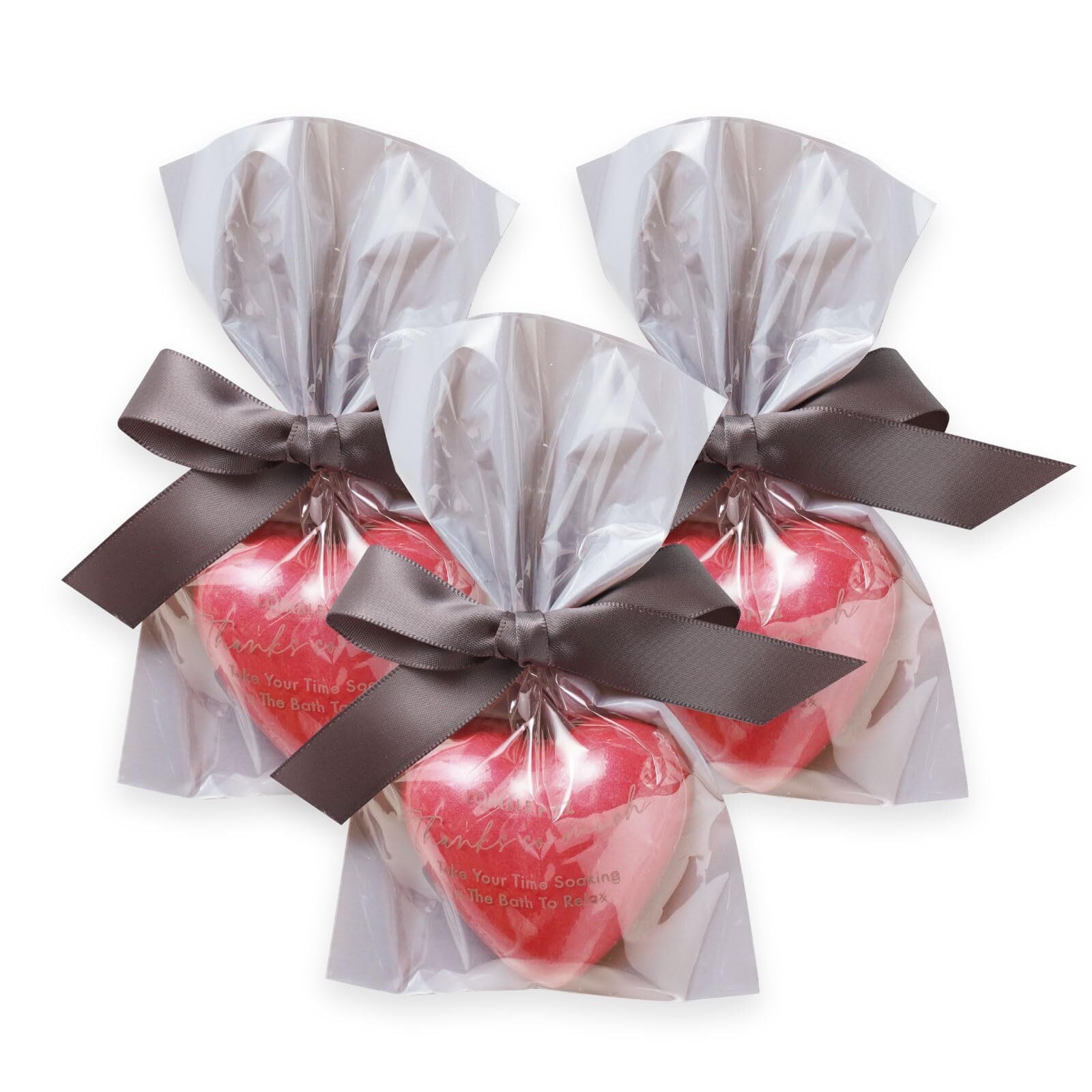 きらめくパウダーを纏ったハートモチーフ。可愛らしいリボン付きのパッケージ。結婚式やお礼、お祝い、お返し等のプチギフトにおすすめの入浴料