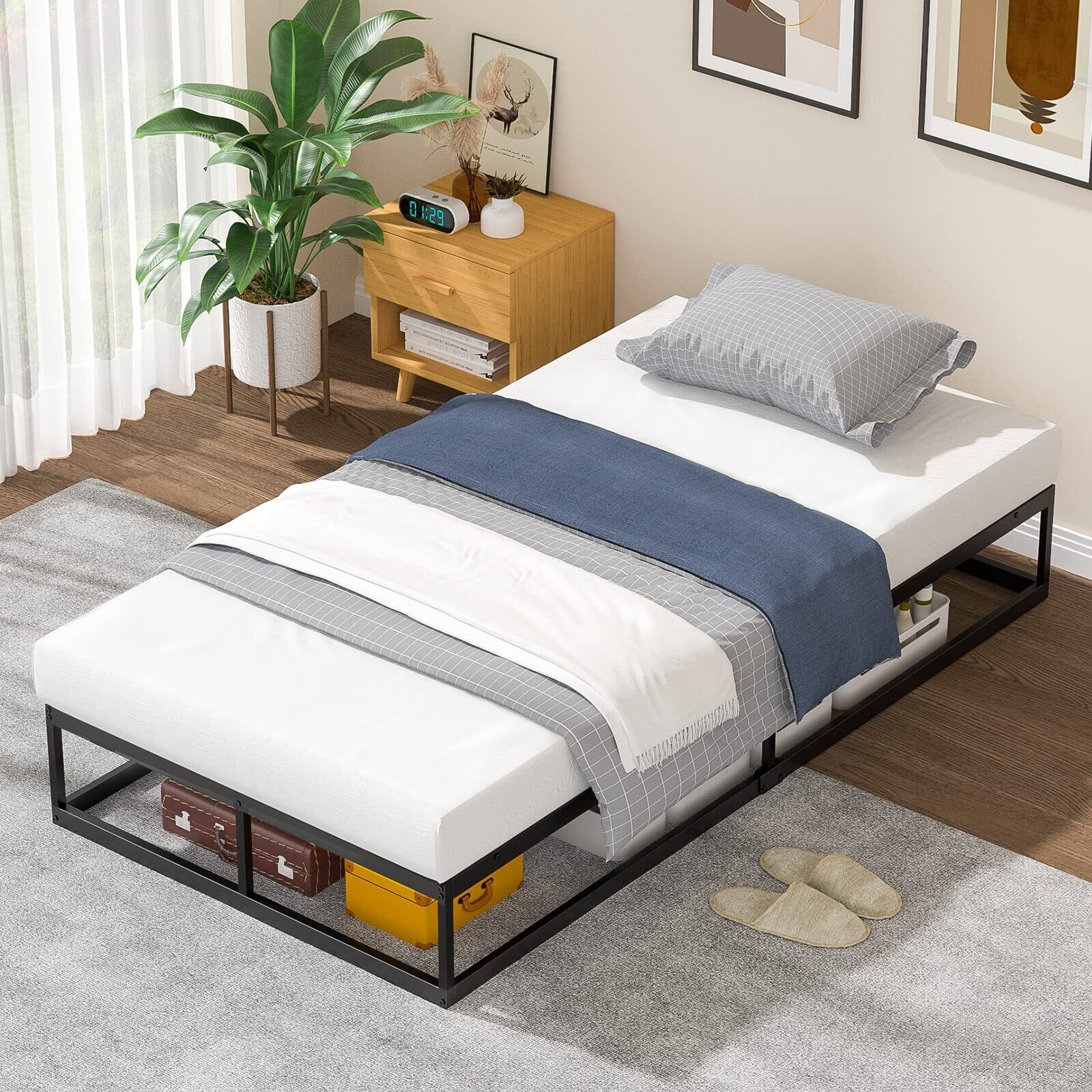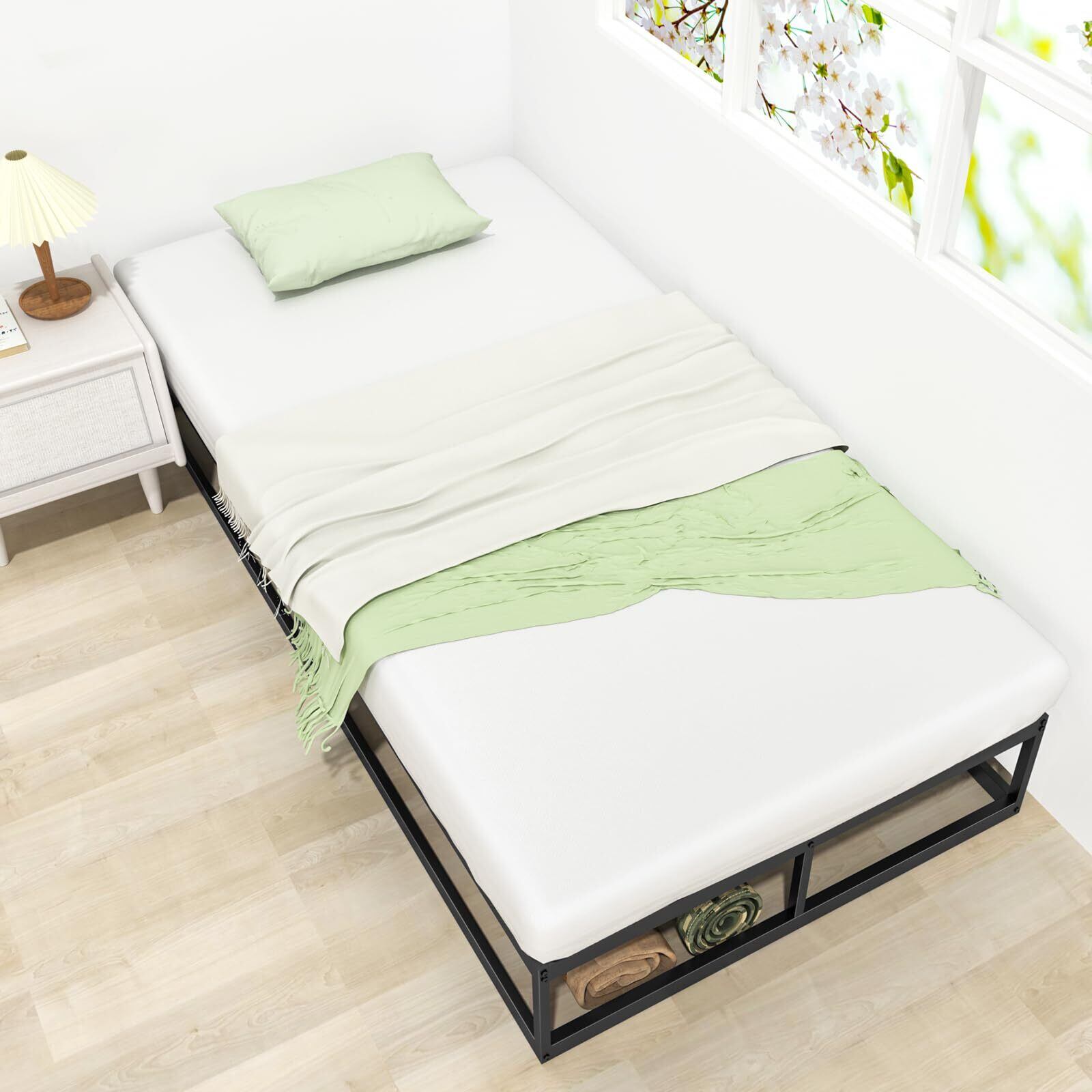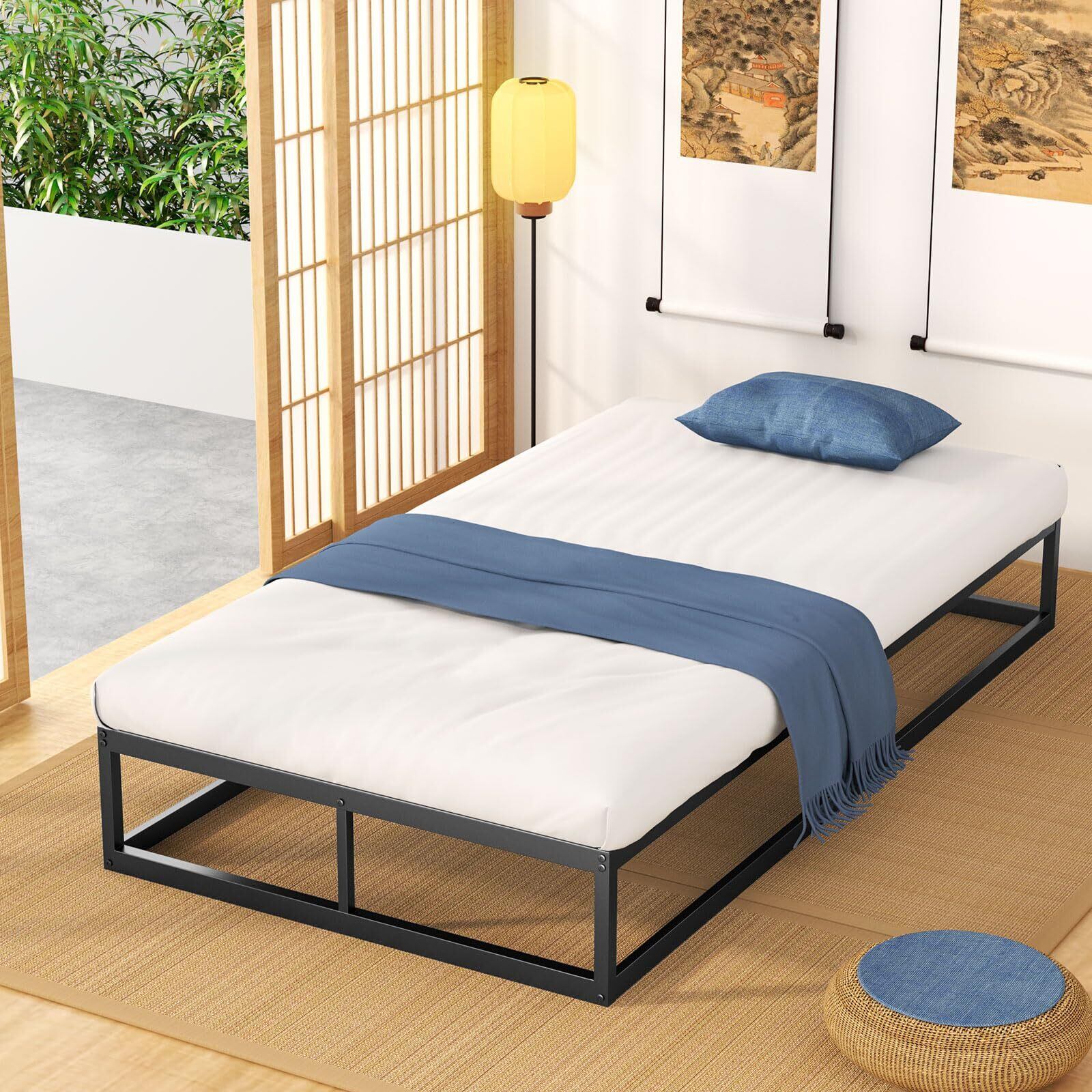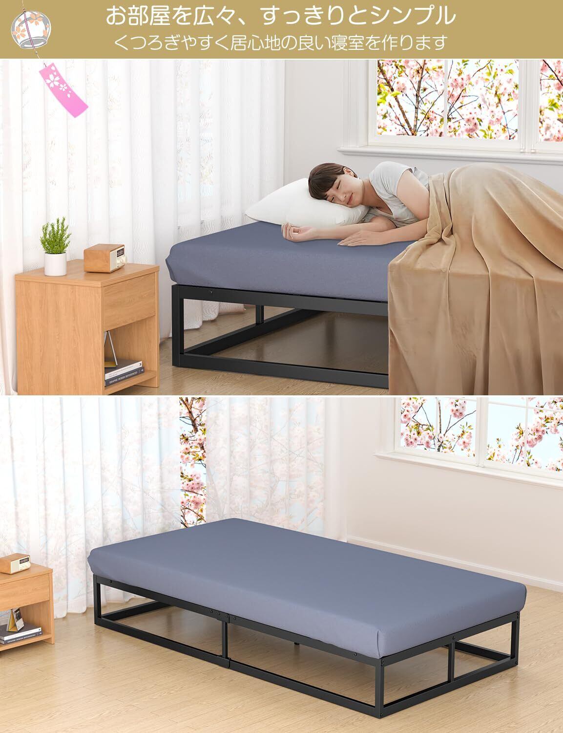 【きしみなし・耐久性に優れるパイプベッド】こちらのベッドフレームは全部金属のすのこを支えるタイプで使用感はきしみやがたつきがなく、木製のベッドフレームより倍程頑丈です。