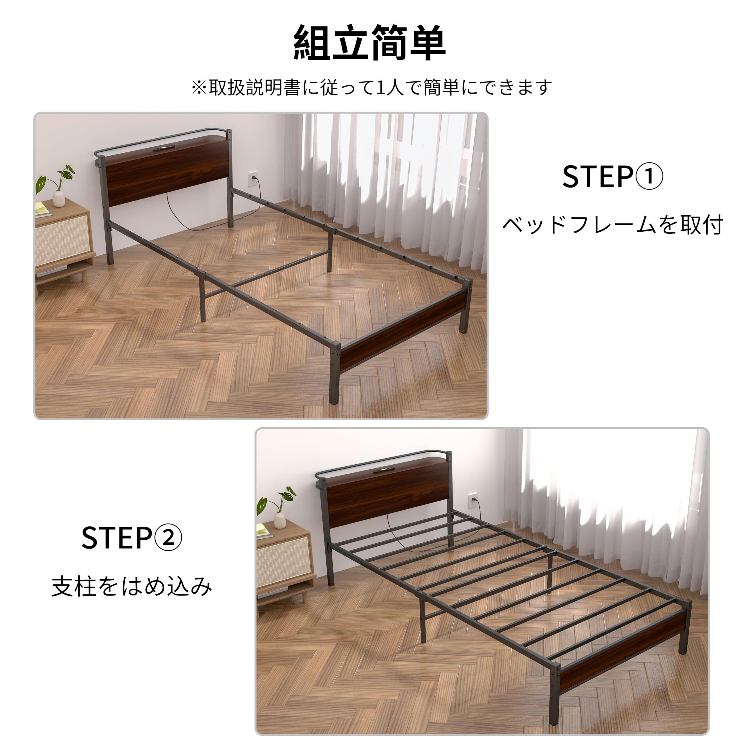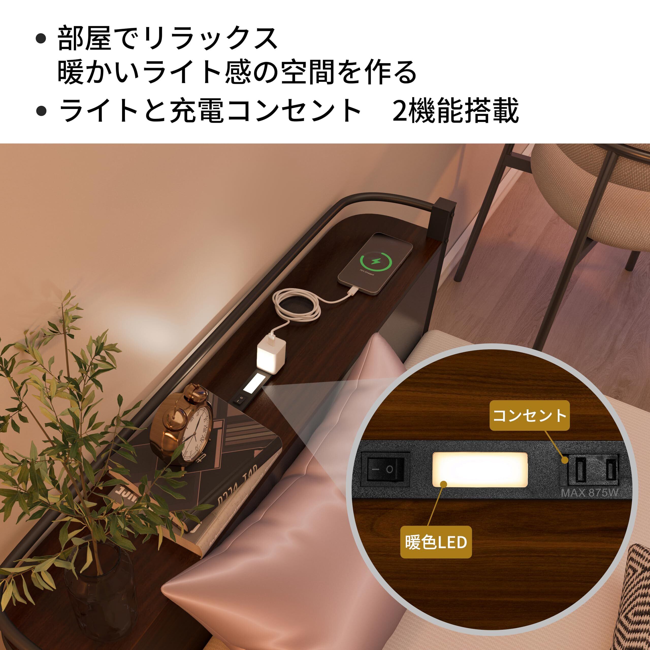 【オペレーション】サイドフレームにサイドライトと2口コンセントを装備しております。夜中の起床時にはサイドライトで必要な明るさを確保でき、併設されたコンセントで充電も便利にお使いいただけます。PSE認証を取得しております。
