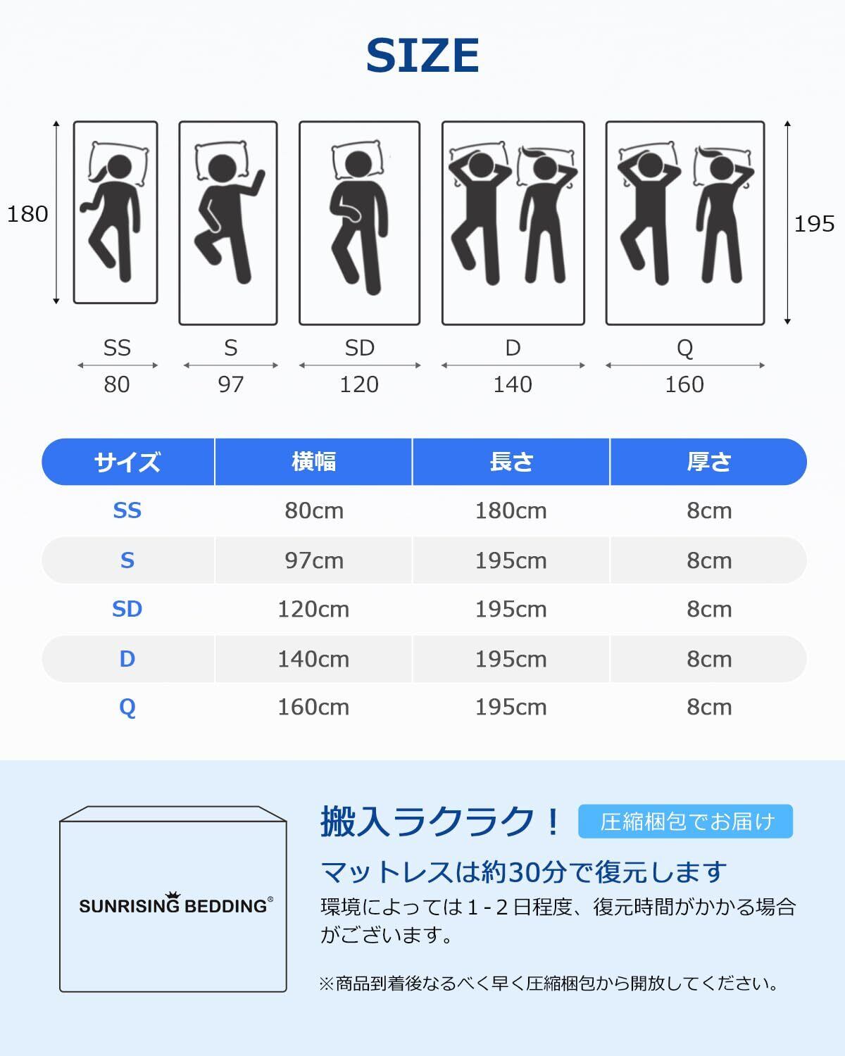 【商品規格】サイズ:97×195×8cm;重量:7.9kg;梱包サイズ:32×32×56cm