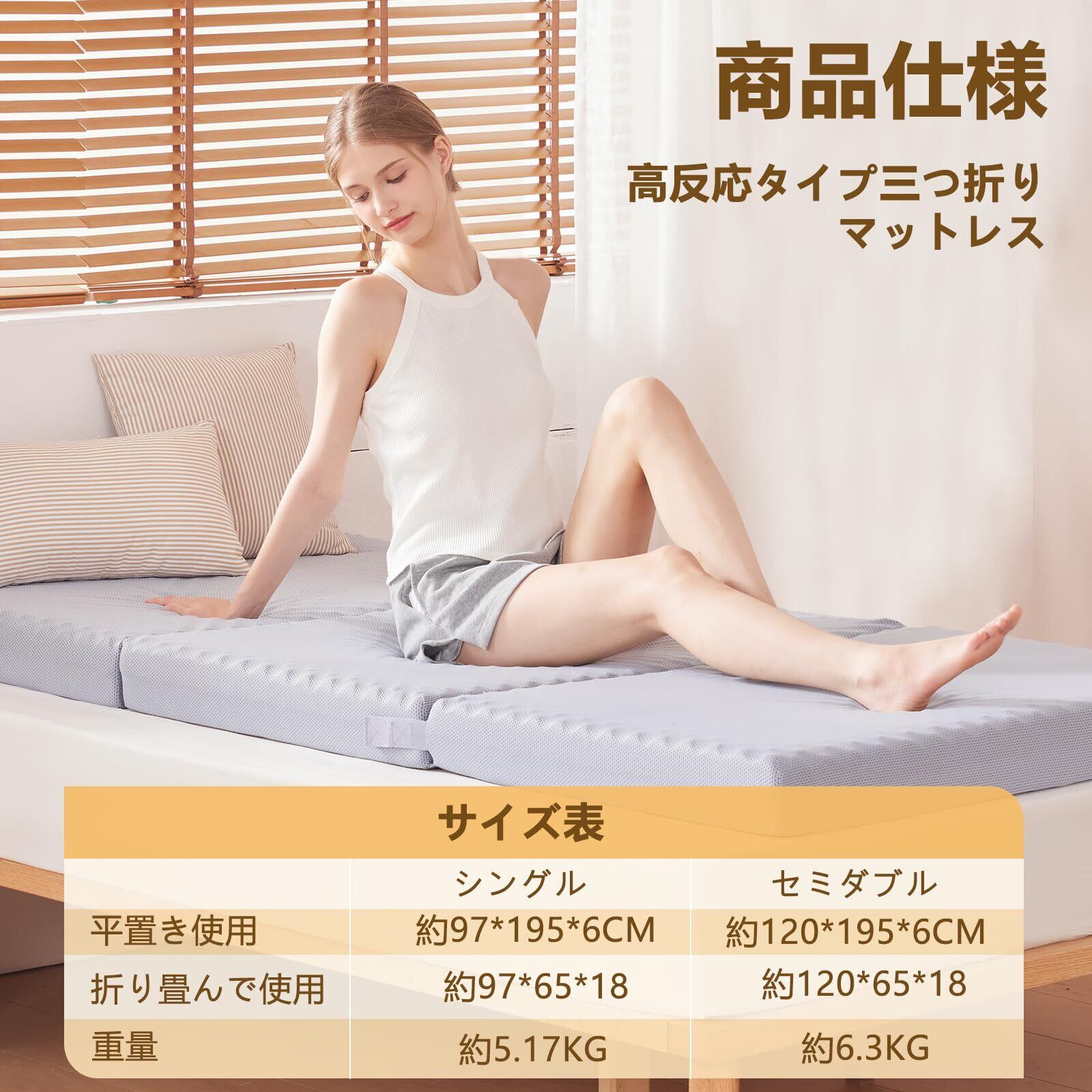 三つ折りマットレス シングル 10CM厚さ 高反応タイプ 敷布団 マットレス 折り畳み 車中泊マット 二層構造体圧分散 ごろ寝マット グレー