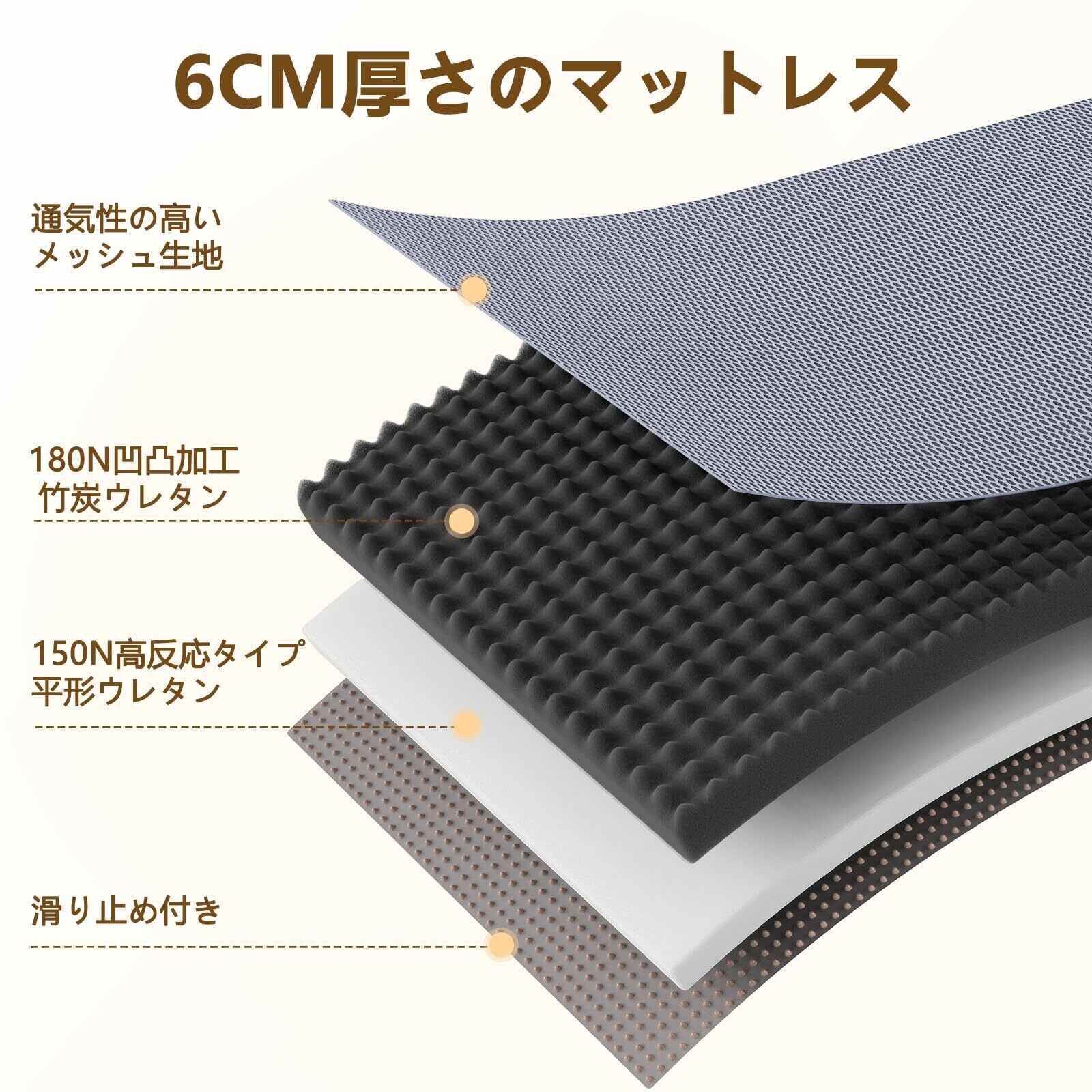 【凹凸加工&竹炭防臭】マットレスシングルは表面に凹凸(プロファイル)加工を施しており、波型の頂点を中心に点で体を支え、体圧を分散します。仕事を終えた夜には、まるで赤ちゃんのようにリラックスした睡眠をもたらします。高反発タイプのウレタンフォームが体を完璧に支え、最適な睡眠姿勢を保ちます。優れた調湿効果と高い消臭効果を持つ竹炭がマットレス本体に練り込まれており、寝汗による気になる臭いを消臭します。