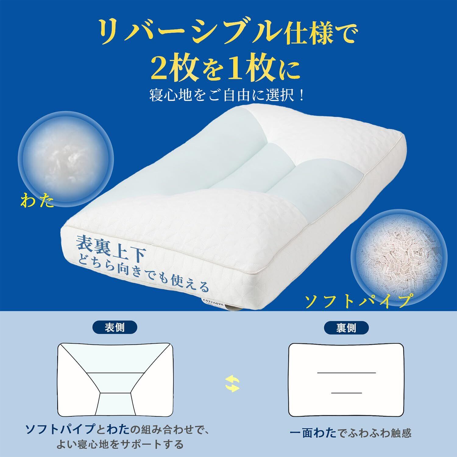 【5.商品詳細】 サイズ 約40*60* (43*63cmの枕カバーにぴったり) がわ生地:肌に優しいのびのび天竺&ニット 詰め物:わた&ソフトパイプ 性能:立体構造 リバーシブル 高さ調整 丸洗い可能:いつも清潔感を維持できます 30日間返品保証:安心トライアル可能