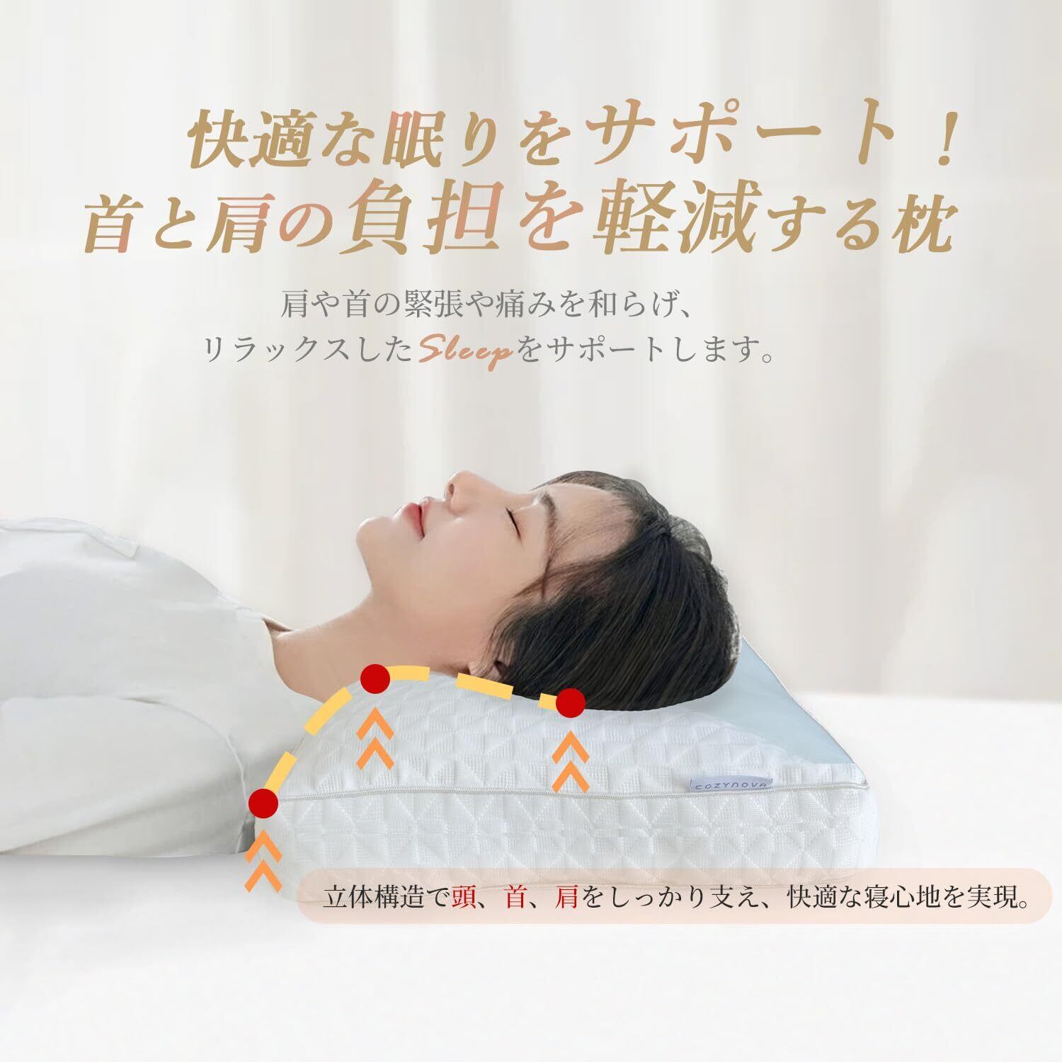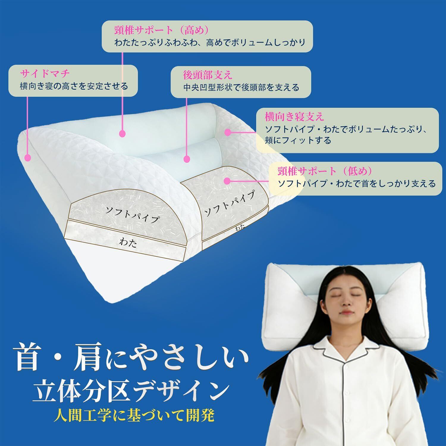 【1.あなたの睡眠を変える1枚 枕 】 【安心睡眠を実現】頭と首を最適にサポートする分区設計で、夜中に目が覚めることなく、朝までぐっすり眠れます。ストレスフリーな「安心睡眠」をお約束します。 【&肩こり軽減】首と肩にかかる圧力を分散させる立体構造が、「」を促進。「肩のストレス」を解放する構造で、朝のダルさを解消します。