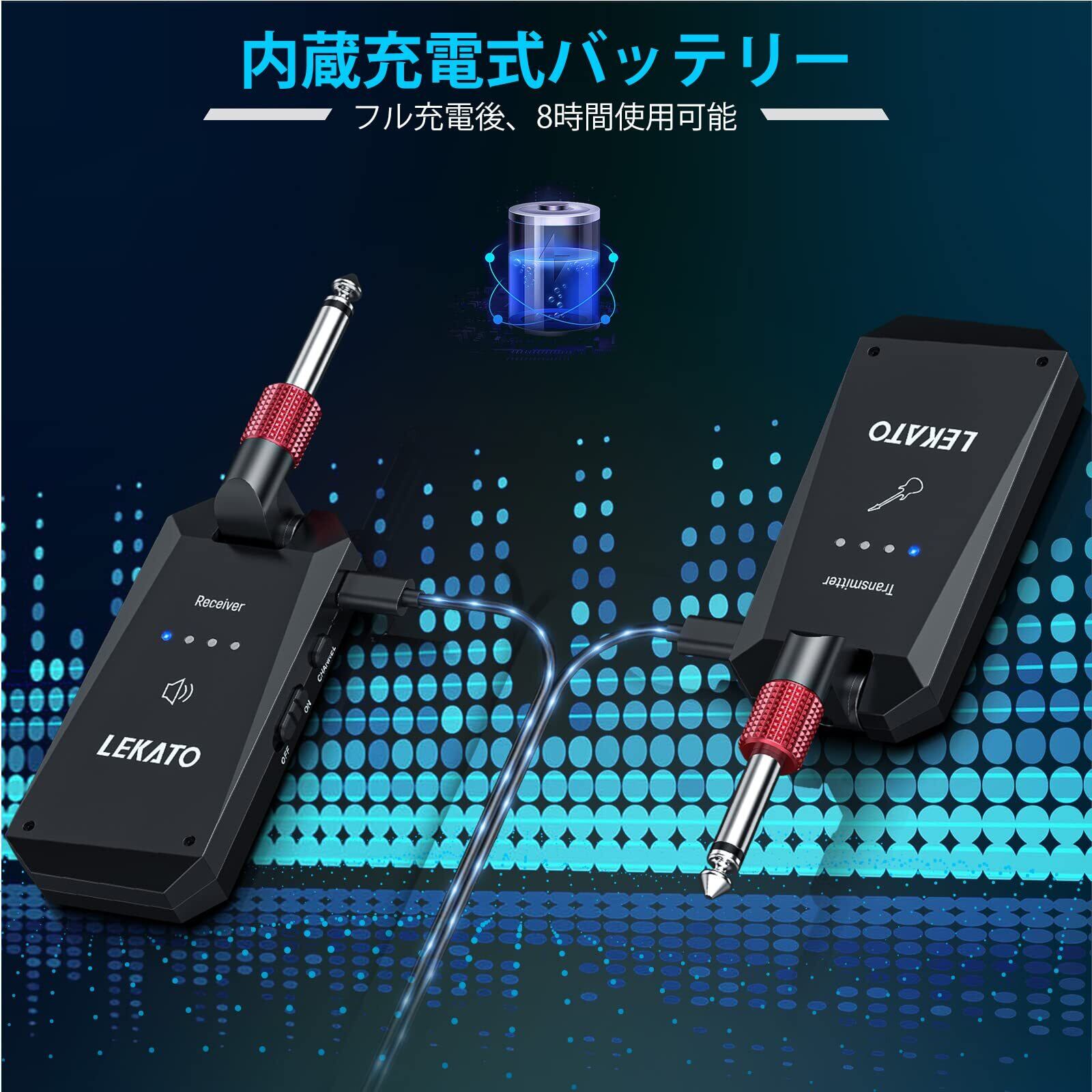 【LEKATO ギター ワイヤレス】高品質の24ビット48KHzオーディオブロードキャストを備えたワイヤレスギターシステム。奏や練習中にギターが優れた音質と音の輝きを提供できるようにします。