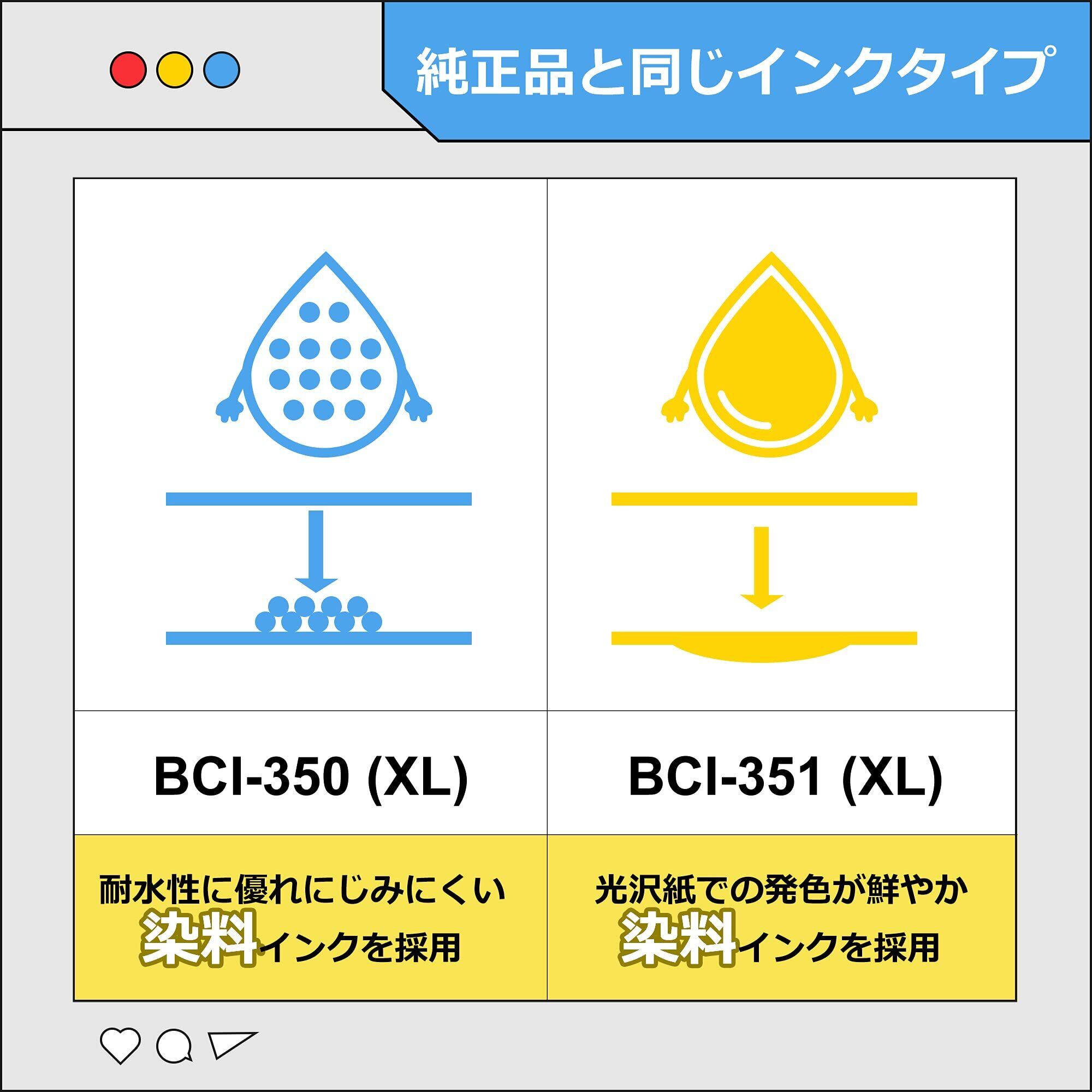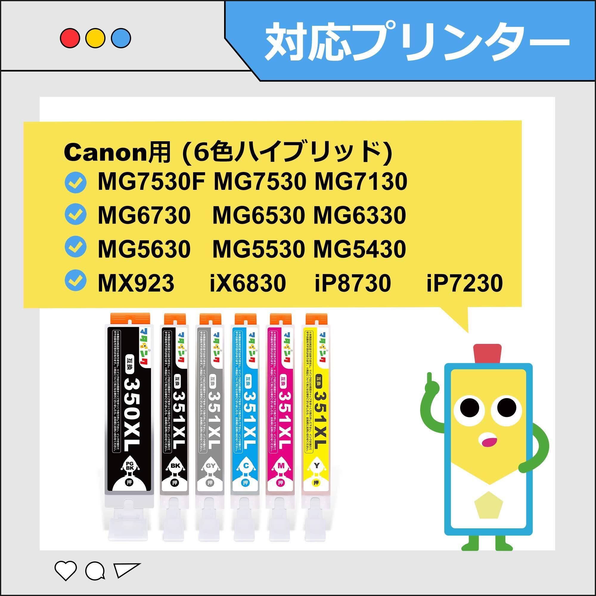 BCI-351XL BCI-350XL キヤノン用 互換インクカートリッジ Canon用 インク 6色セット 351 350 大容量タイプ 対応機種:MG5430 MG5530 MG5630 MG6330 MG6530 MG6730 MG7130 MG7530 MX723 MX923 iX6830 iP7230 iP8730 プリンターインク