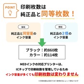 [日本人技術者監修] ・当社熟練の日本人技術者による品質改良・アフターサポートが充実! ・ISO14001、ISO9001を取得した工場で生産された商品です。 ・品質を保持するため、インクはひとつずつ個包装をしております。 ・改善が必要とされる場合は、当社の担当スタッフより海外提携工場と直接やり取りを行っております。連携を密にとり、品質の維持や向上に努めております。・純正インクから互換インクに切り替えた最初のうちは、それぞれのインクが混ざり合う為に印刷にかすれが出ることがあります。その場合は、通常よりも多めにヘッドクリーニングをおこなってください。