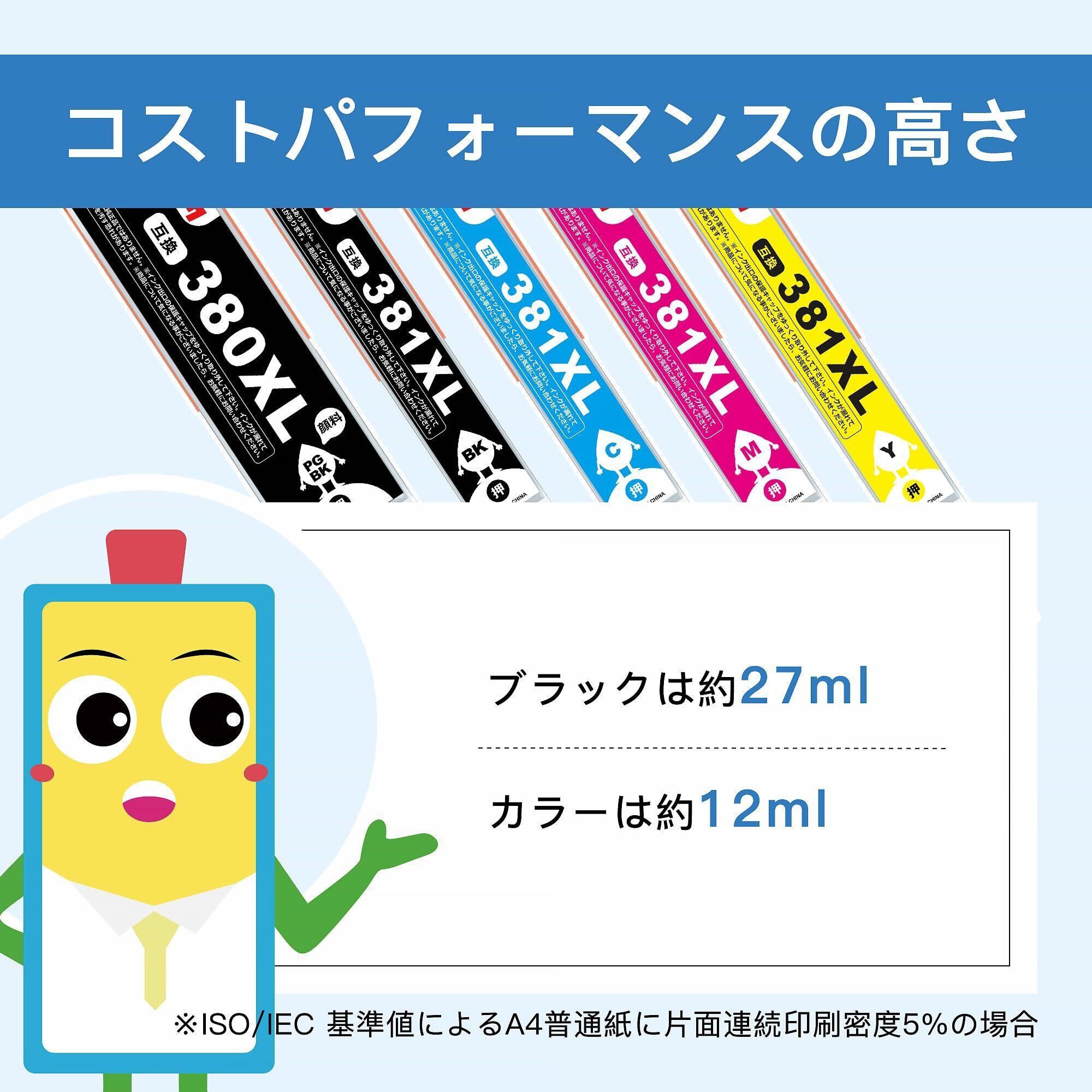 BCI-381XL BCI-380XL キヤノン用 インク 380 381 5色マルチパック 大容量タイプ 互換インクカートリッジ 対応機種:TS6130 TS6230 TS6330 TS7330 TS7430 TR7530 TR8530 TR9530 TR9530a TR703 インク