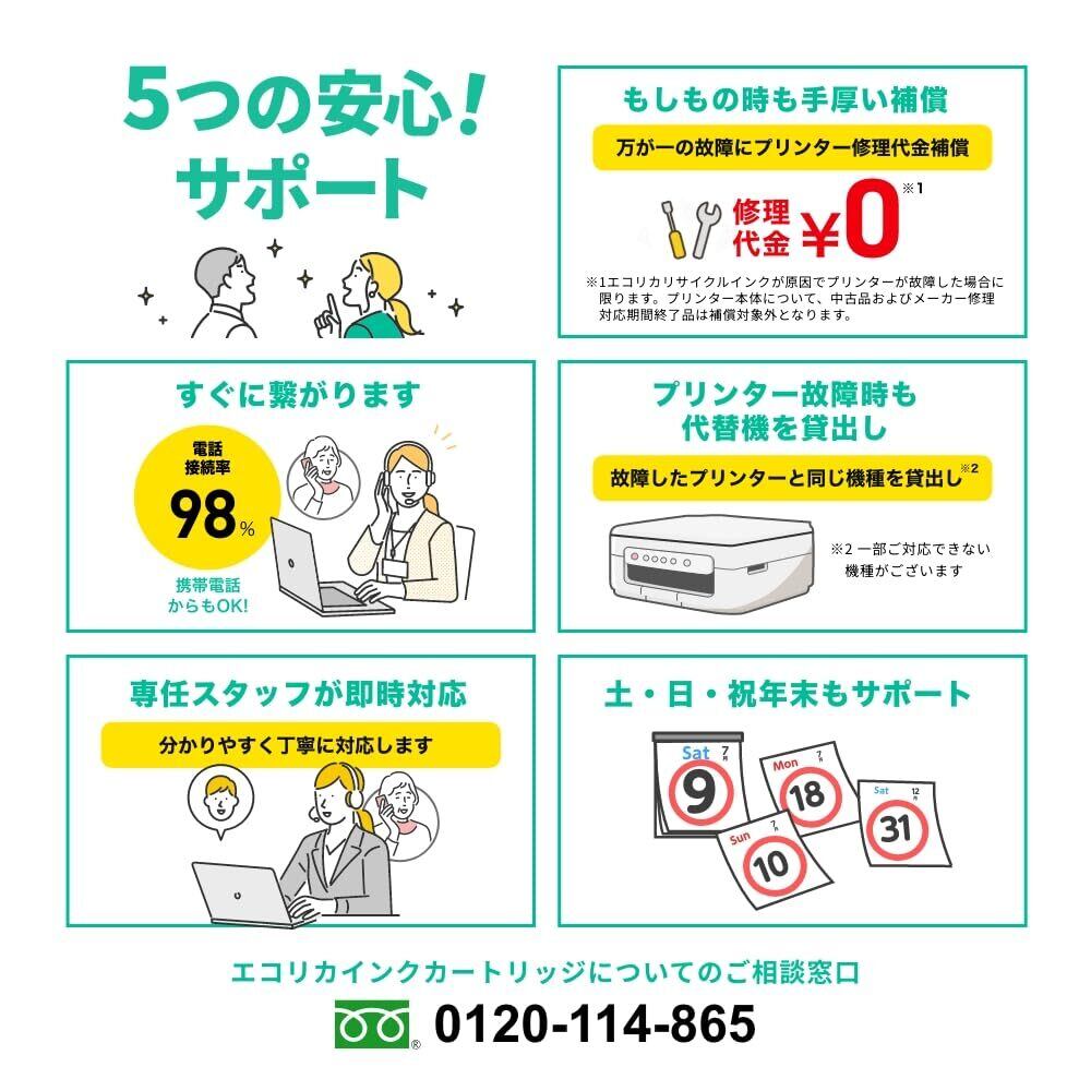 さらに、万が一エコリカ製品が原因で故障した場合、代替品の貸出・プリンター本体の修理代金の保証も行っております。
