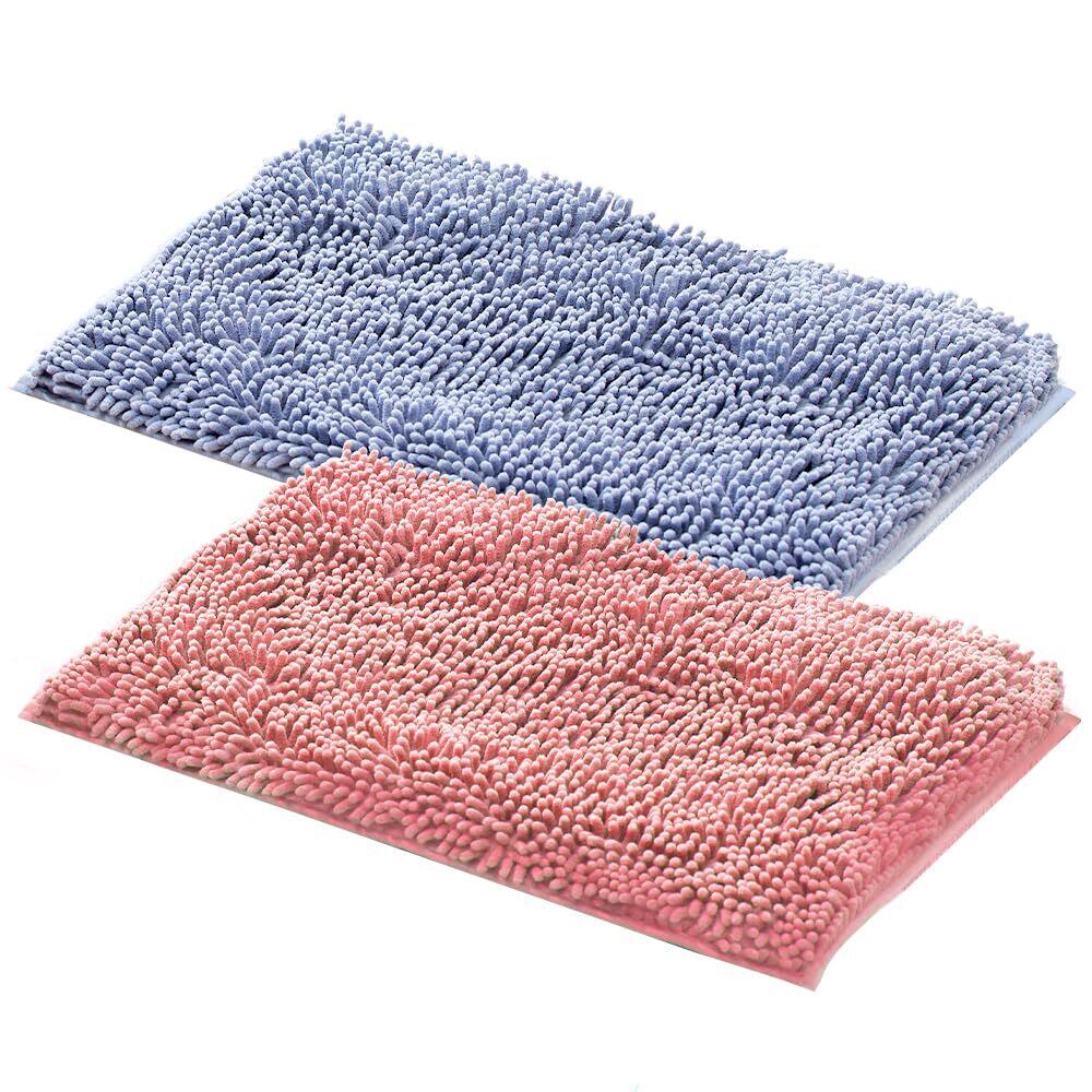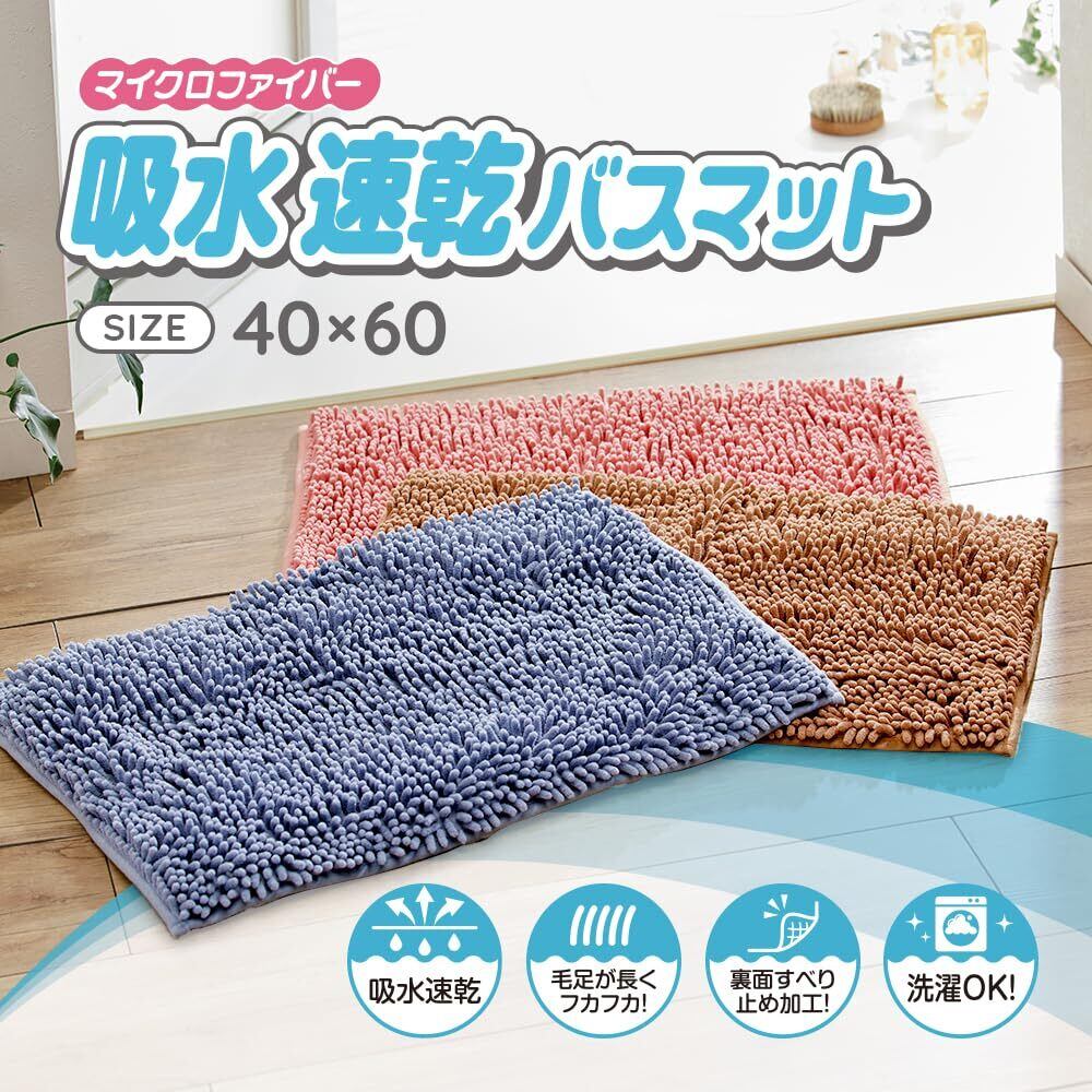 アイメディア(Aimedia) バスマット マイクロファイバー 速乾吸水 40x60cm 2色セット コーラルピンク ブルーグレー 足拭き 浴室足ふき 滑り止め 丸洗い可能 柔らかい お風呂 バス用品