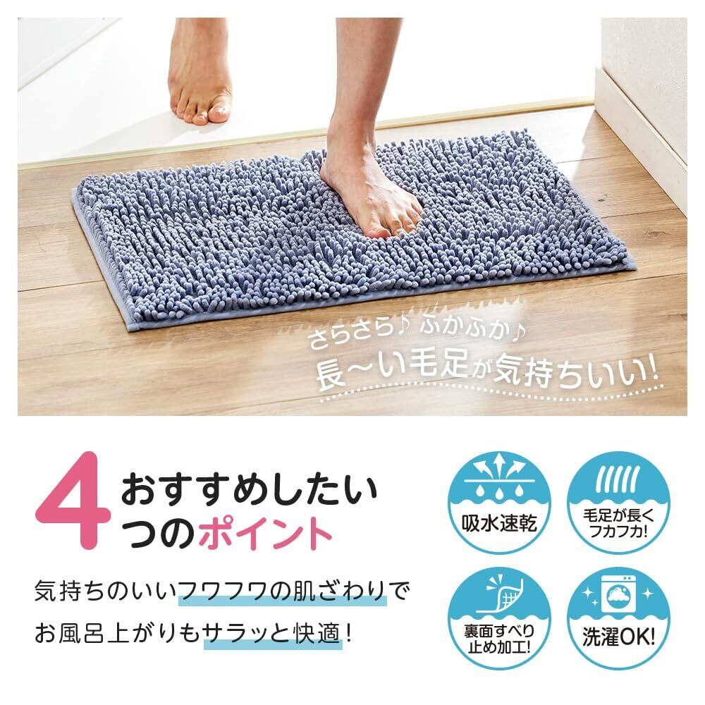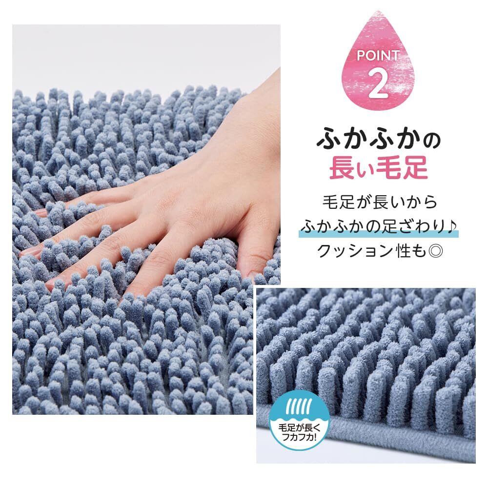 さらさら、ふかふかの長い毛足が気持ちいいマイクロファイバーバスマット。肌ざわりが良くお風呂上がりもサラッと快適!マイクロファイバーは極細の多角断面で、細かな繊維のすき間が非常に多いため、「毛細管現象」で繊維の間にすばやく水を吸収します。拡散スピードが速いので表面はスグにサラサラに。裏面はすべり止め加工。洗濯機で洗えます。2色セットで洗い替えに便利。