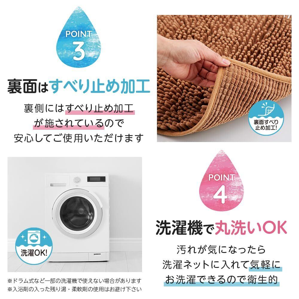 【丸洗いOK・多用途マット】使った後は洗濯機での丸洗いもOK! いつでも清潔に保てます! バスマット、ドアマット、階段マット、玄関マット、浴室足ふきマット、キッチンマットなど、様々な使い道に!