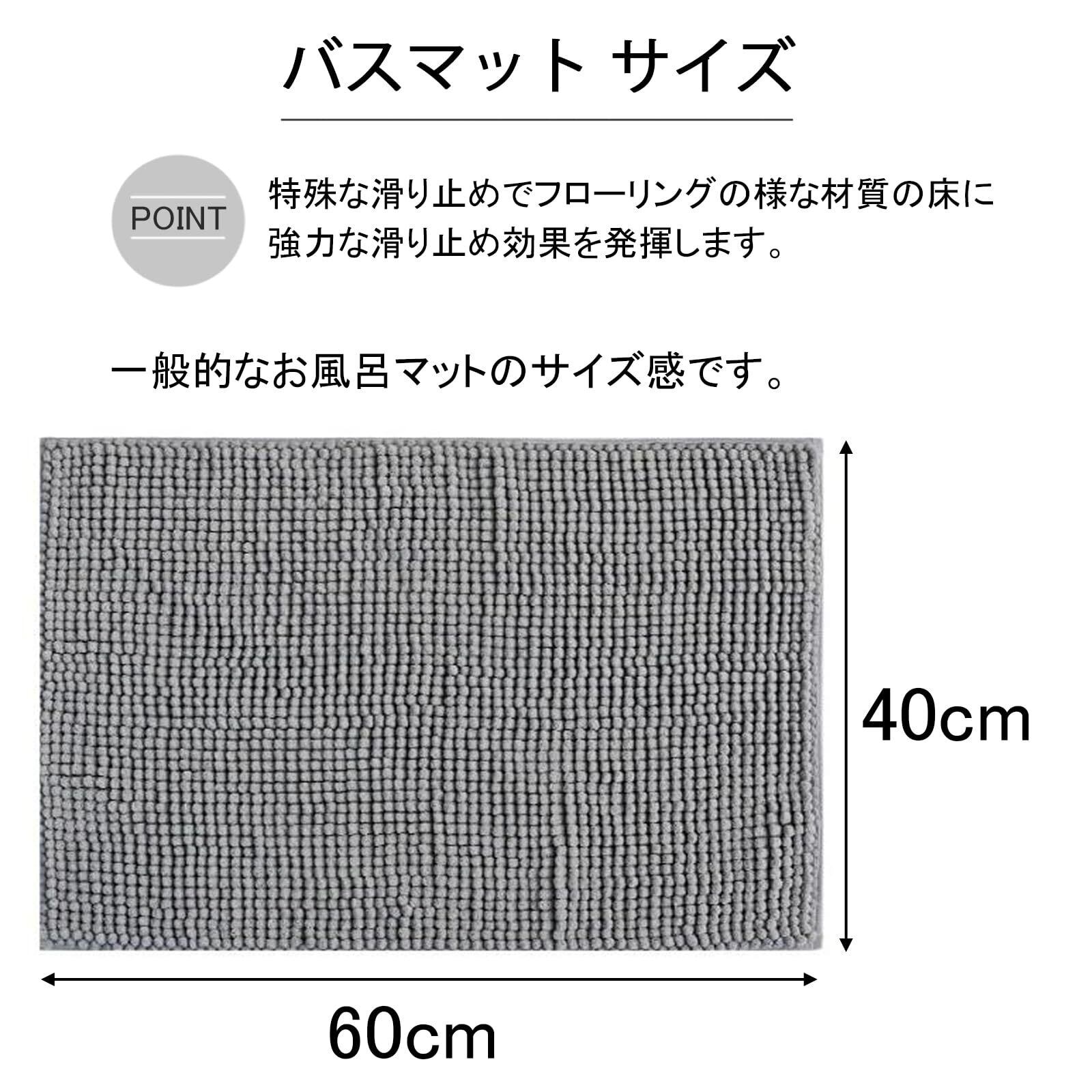 様々なシーンで活躍! 風呂場だけでなく、脱衣所、洗面所、玄関など、様々な場所で活躍する多機能マットです。シンプルなデザインと40x60cmの使いやすいサイズで、どんなインテリアにも馴染みます。吸水マット、足拭きマットとして、快適な生活をサポートします。