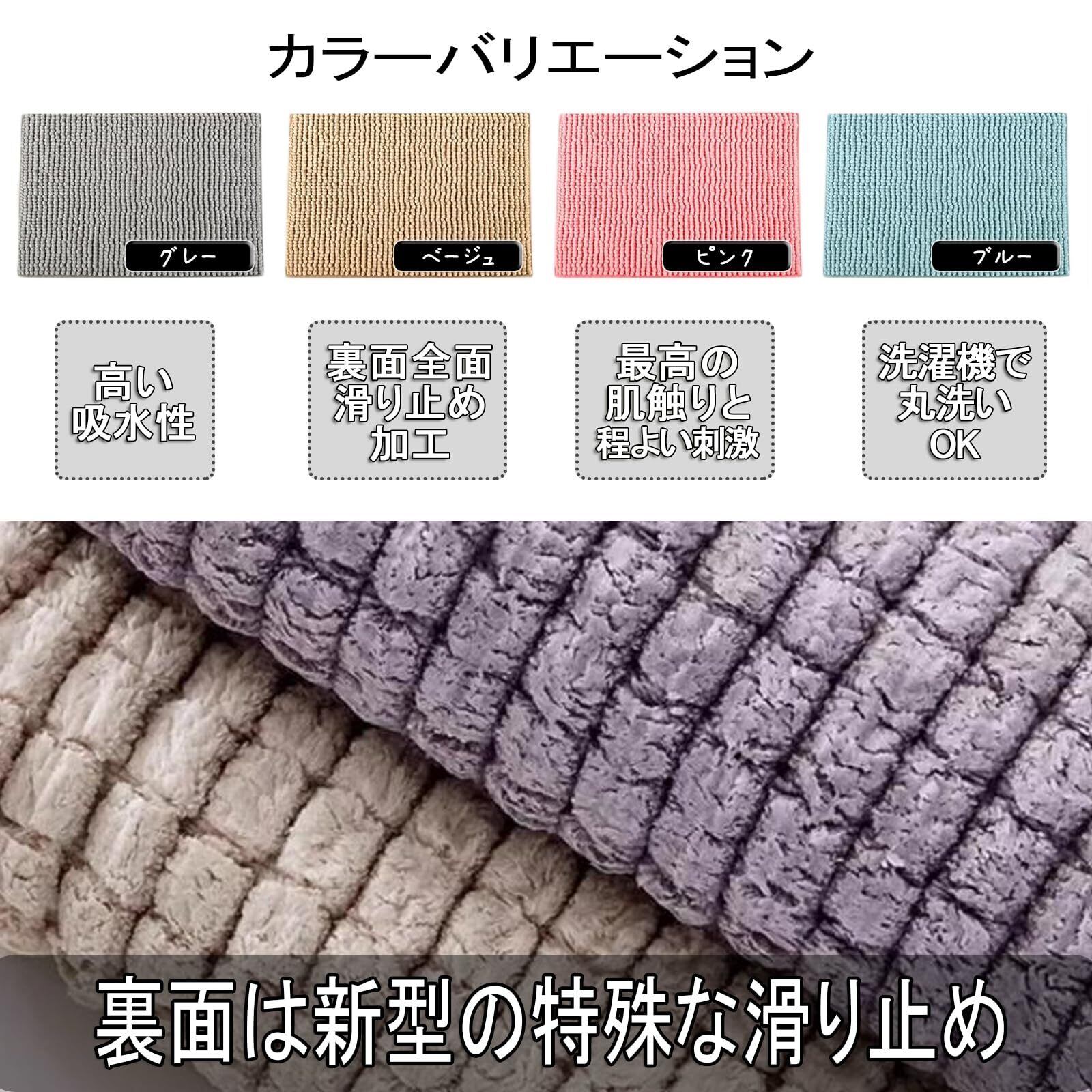 最新型のバスマットがあなたのバスルームを快適な空間に。驚きの滑り止め効果と吸水力、速乾性をご堪能下さい。シンプルなデザインと実用性と兼ね備えたこの足ふきマットは、お風呂上がりの水滴をしっかりキャッチ。さらっとした使い心地で、いつでも快適な足元を保ちます。一粒一粒がしっかりとしているので、足裏に刺激も与えてくれます。