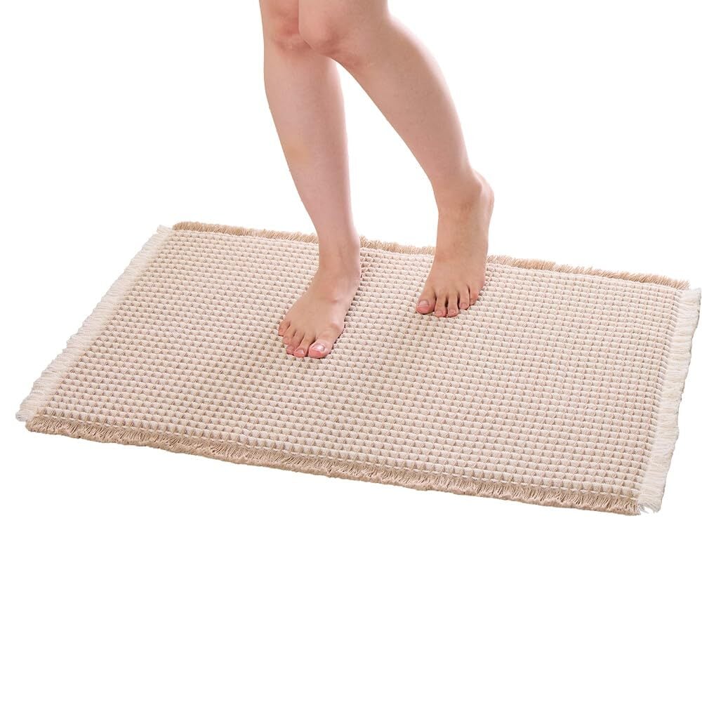 アイメディア(Aimedia) バスマット ワッフル織 浴室足ふきマット 速乾 吸水 50×80cm ベージュ 大判 洗える 抗菌 すべり止め 乾きやすい サラサラ 快適 シンプル お風呂 脱衣所 バス用品