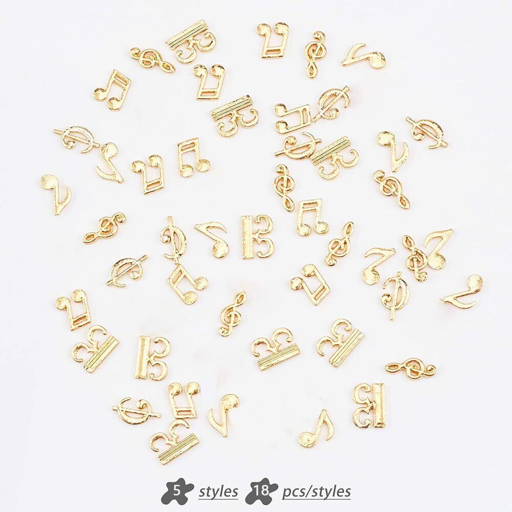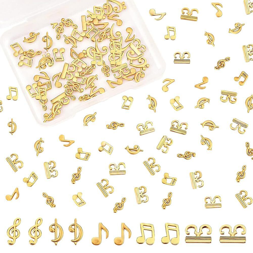 [OLYCRAFT] 75個5種類 レジン封入用 パーツ 音符 エイトノート メタルパーツ 合金 デコパーツ チャームパーツ ジュエリー用 UVレジン 封入 材料 ハンドメイド アクセサリーパーツ DIY手作り-金色