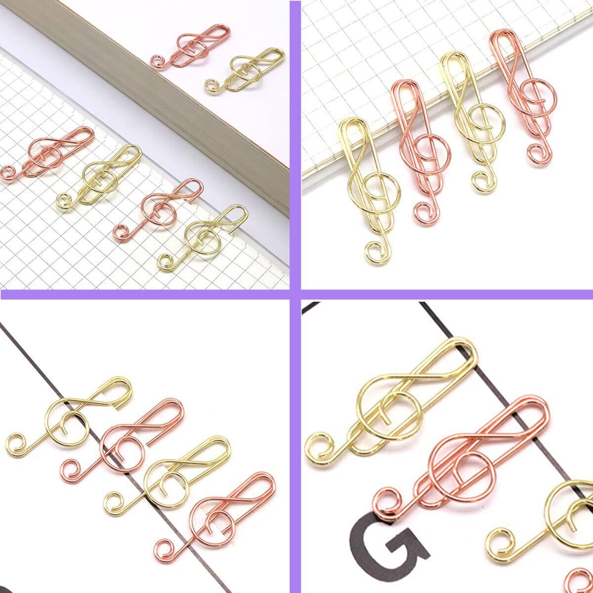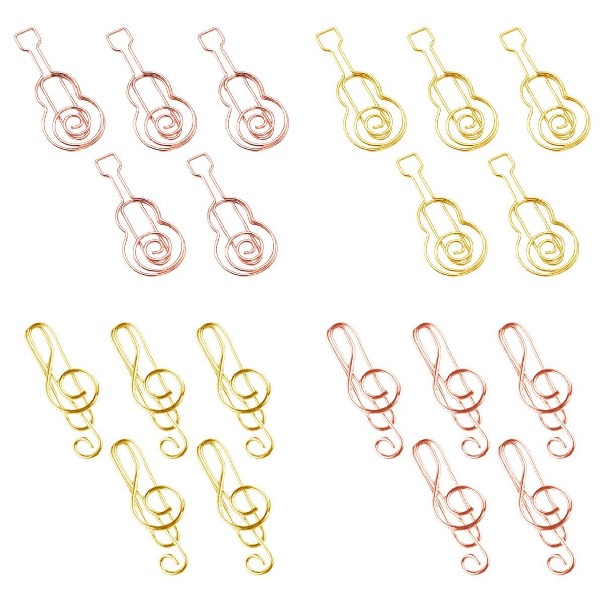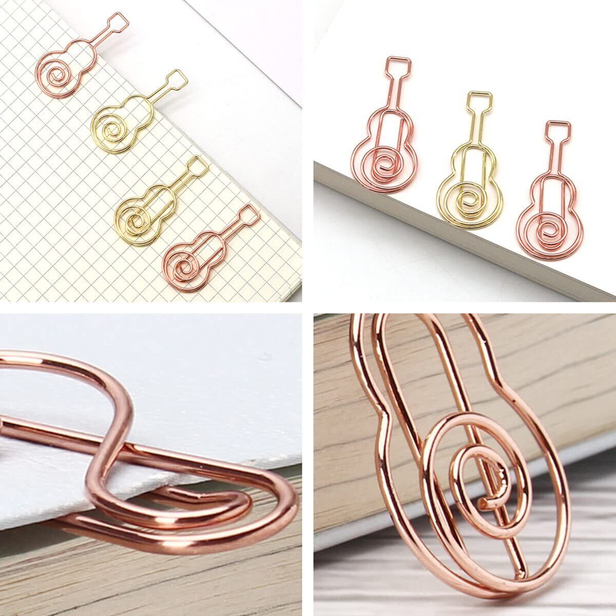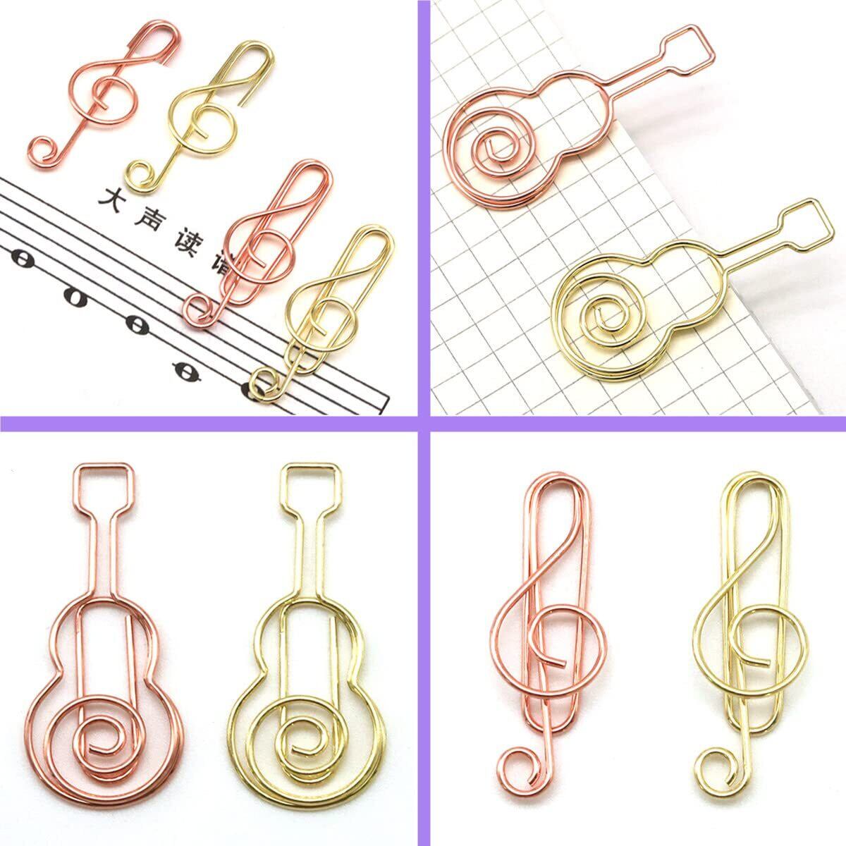 20個 音楽 ペーパークリップ、大きいサイズ 音符 ギターの形 金属 クリップ ブックマーク メモクリップ ペーパークランプ にとって 学校 文房具 文書組織 事務用品 (ゴールド & ローズゴールド)