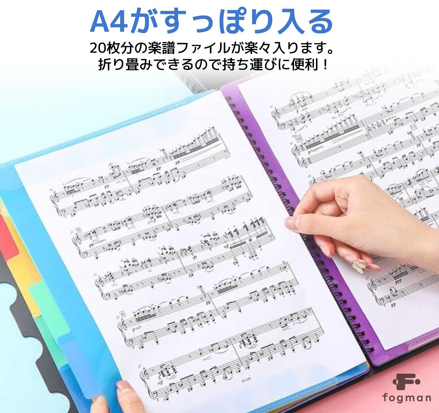 【A4がすっぽり入る】20枚分の楽譜ファイルが楽々入ります。 折り畳みできるので持ち運びに便利!