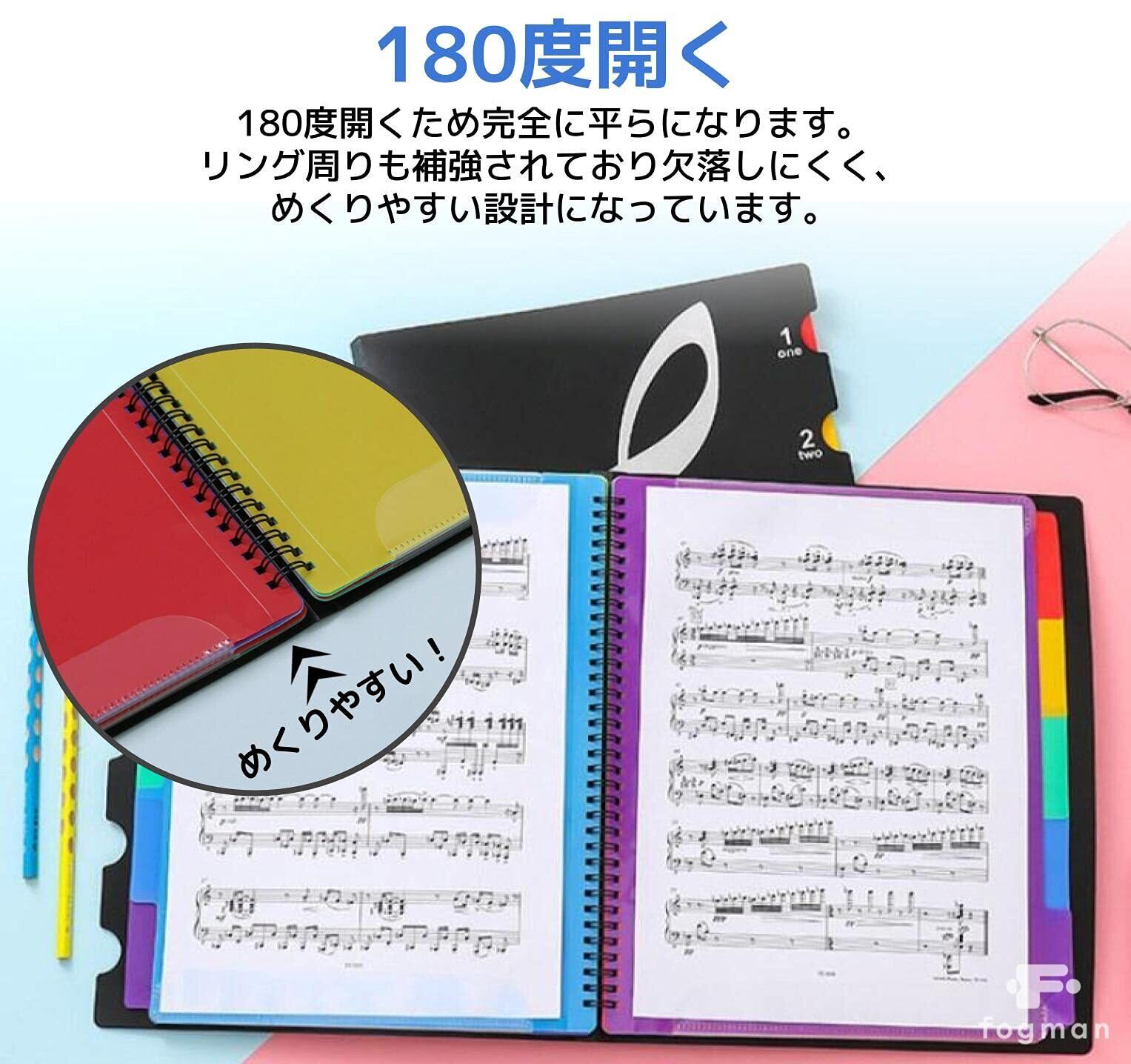 fogman 音楽ファイル 楽譜ファイル 楽譜ケース 楽譜いれ 楽譜入れファイル レッスンファイル A4 黒 吹奏楽 書き込みできる (20枚収納)