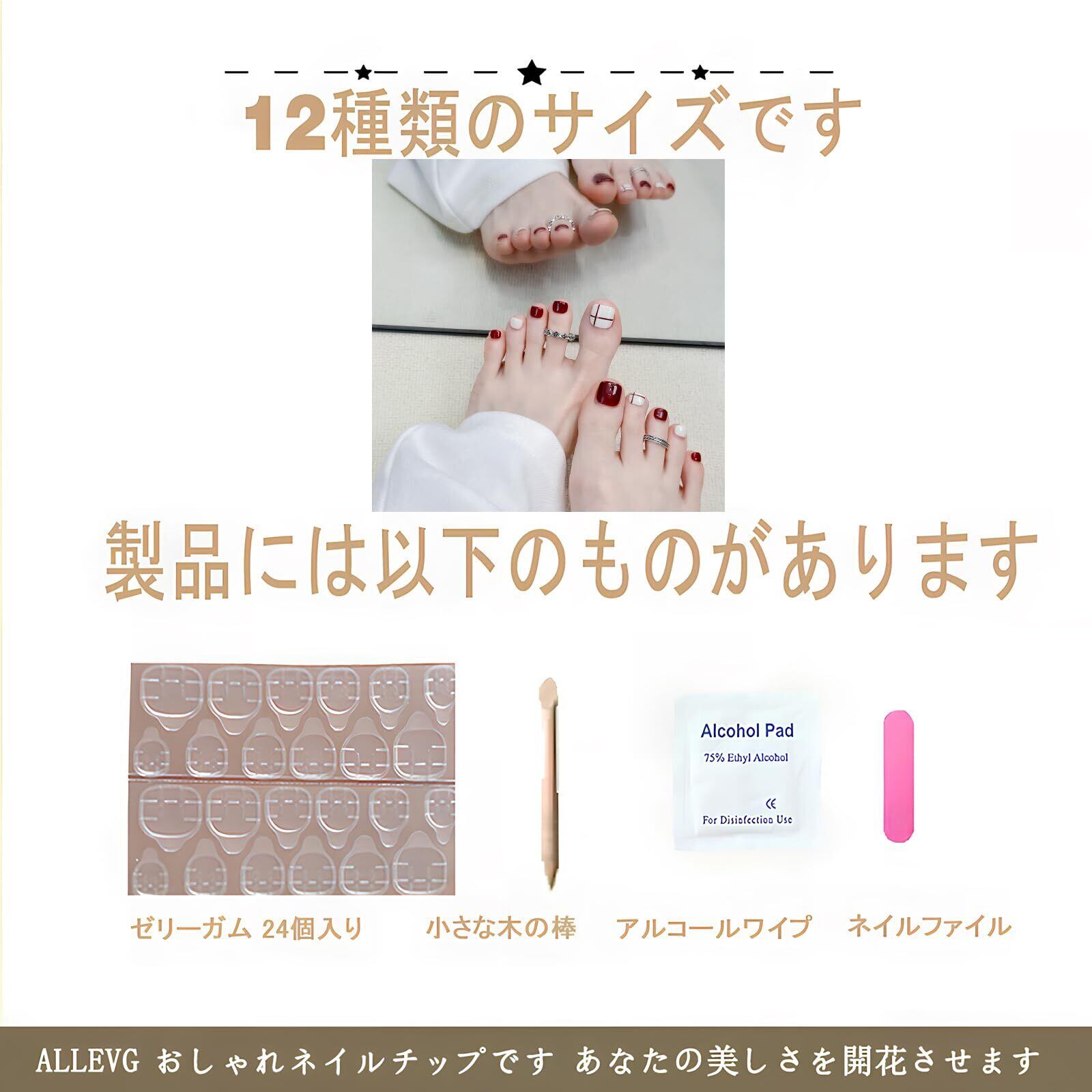 【貼るだけ簡単】フットネイルチップの形状が本物のネイルに似ているため、簡単に装着できます。(24枚のネイルチップ先は12種類の異なるサイズを含む)。優れたネイル技術は必要ありませんので、初心者でも簡単に貼ることができます。5分で創作が完成します。