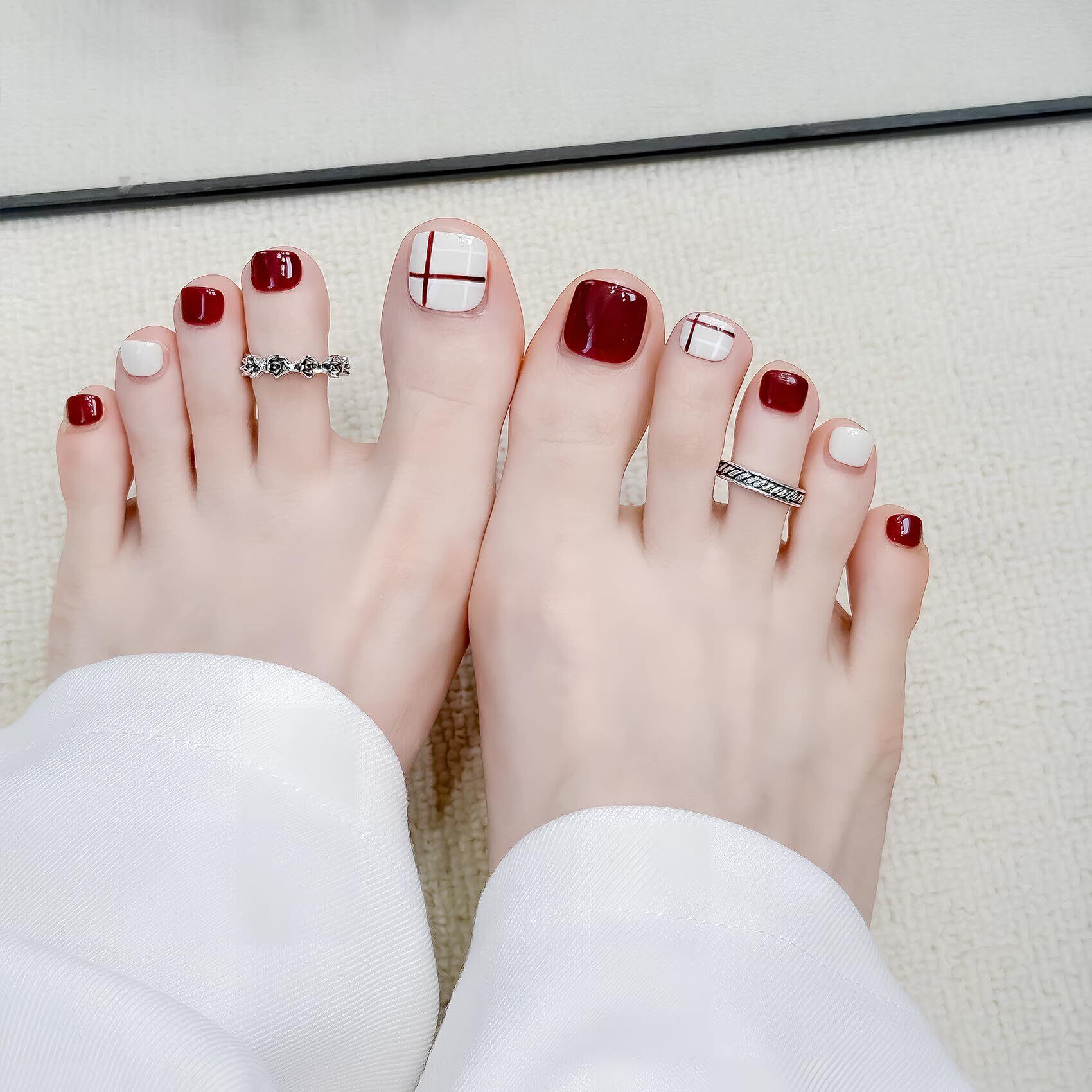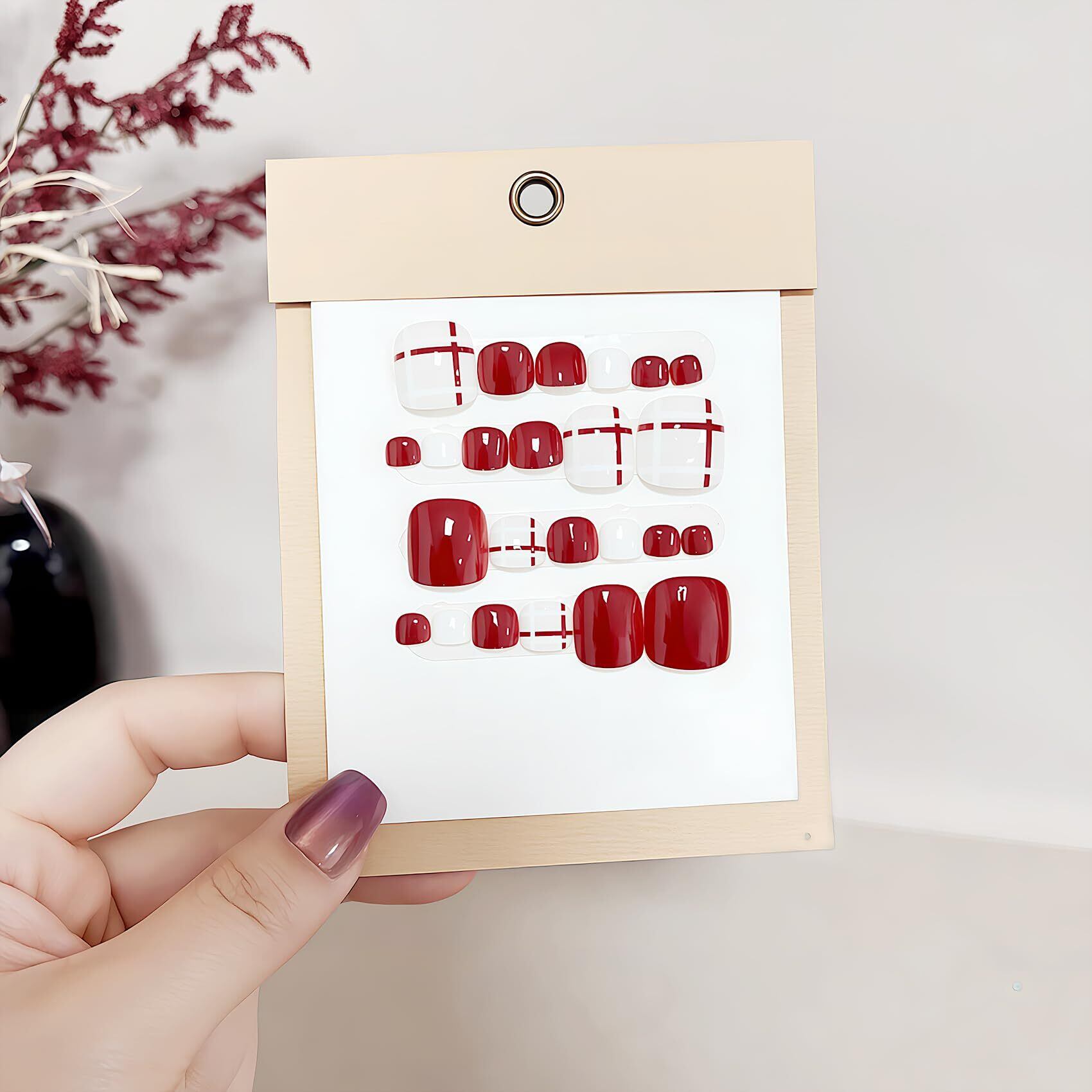 [ALLEVG]ネイルチップ 足用 赤24枚入 フットネイルチップ フットネイル 足用ネイルチップ マグネット 夏 付け爪 成人式 可愛い 人気 シンプル 繰り返し使える