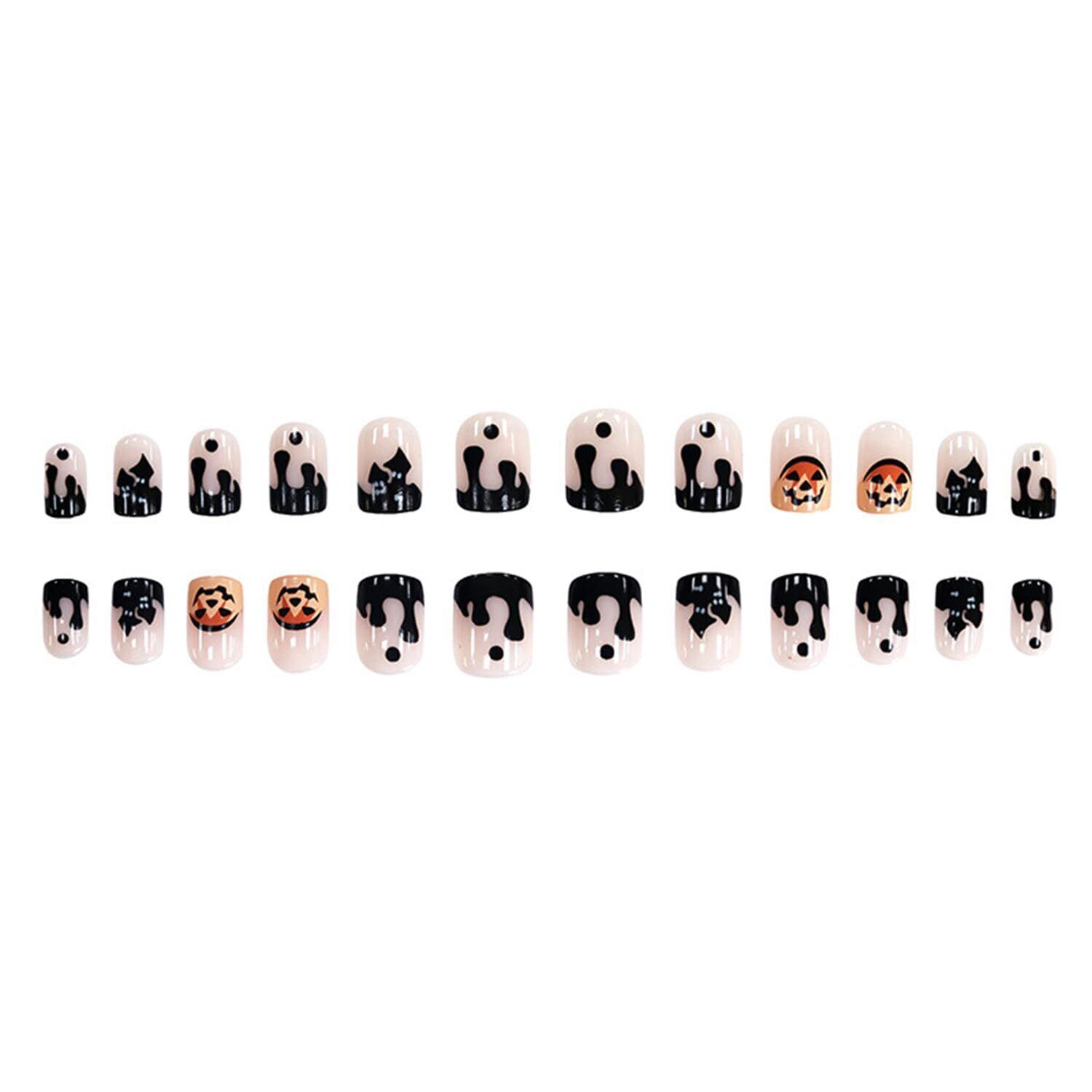 ネイルチップ ネイルシール 24枚入 ショート 短め 人気 ネイル カラージェル おしゃれ 手作り 繰り返し使える 蜘蛛の巣 お化け かぼちゃ つけ爪 ハロウィーン コスプレ 仮装 成人式 パーティー 日常生活に使用 (V231)