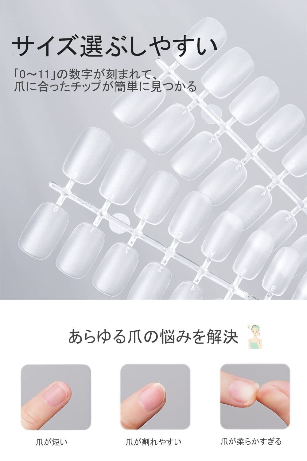 【豊かなセット】15サイズがある、各サイズ 20 枚、合計300枚を含む。約30回使用できます。 また、指先には「0~12」の数字が刻まれているので、自分の爪に合ったチップが簡単に見つかります。チップの形はスタンダードなオーバルとなり、デザイン見本用のチップとして、とても綺麗で理想的なネイルチップを作ることが出来ます。