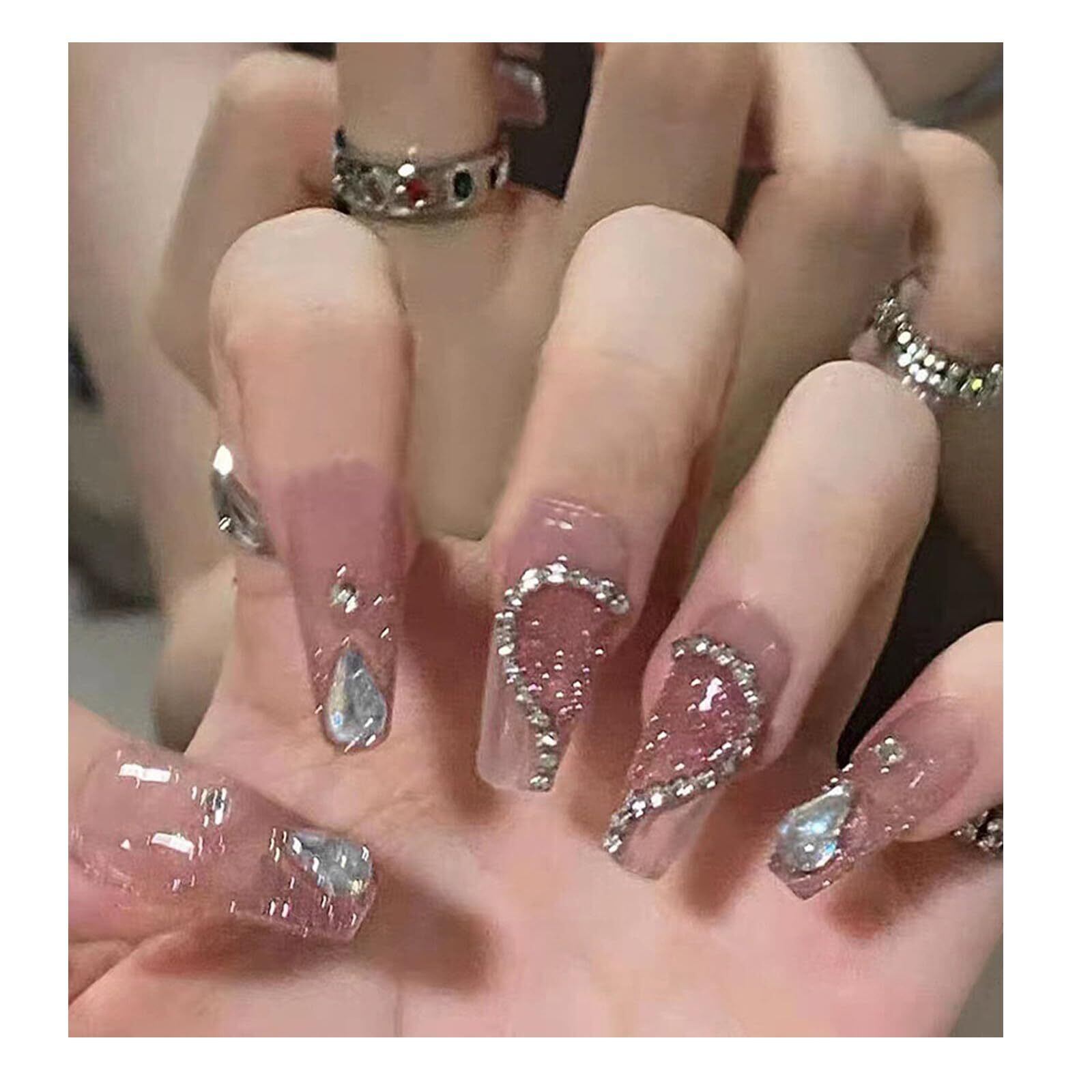ネイルチップ 手作りネイルチ 3D 立体 光沢 付け爪 ネイル用品 人気 おしゃれ 両面テープ付き パーティー 撮影 デート 結婚式 成人式 入学式 卒業式 (001, 24枚)