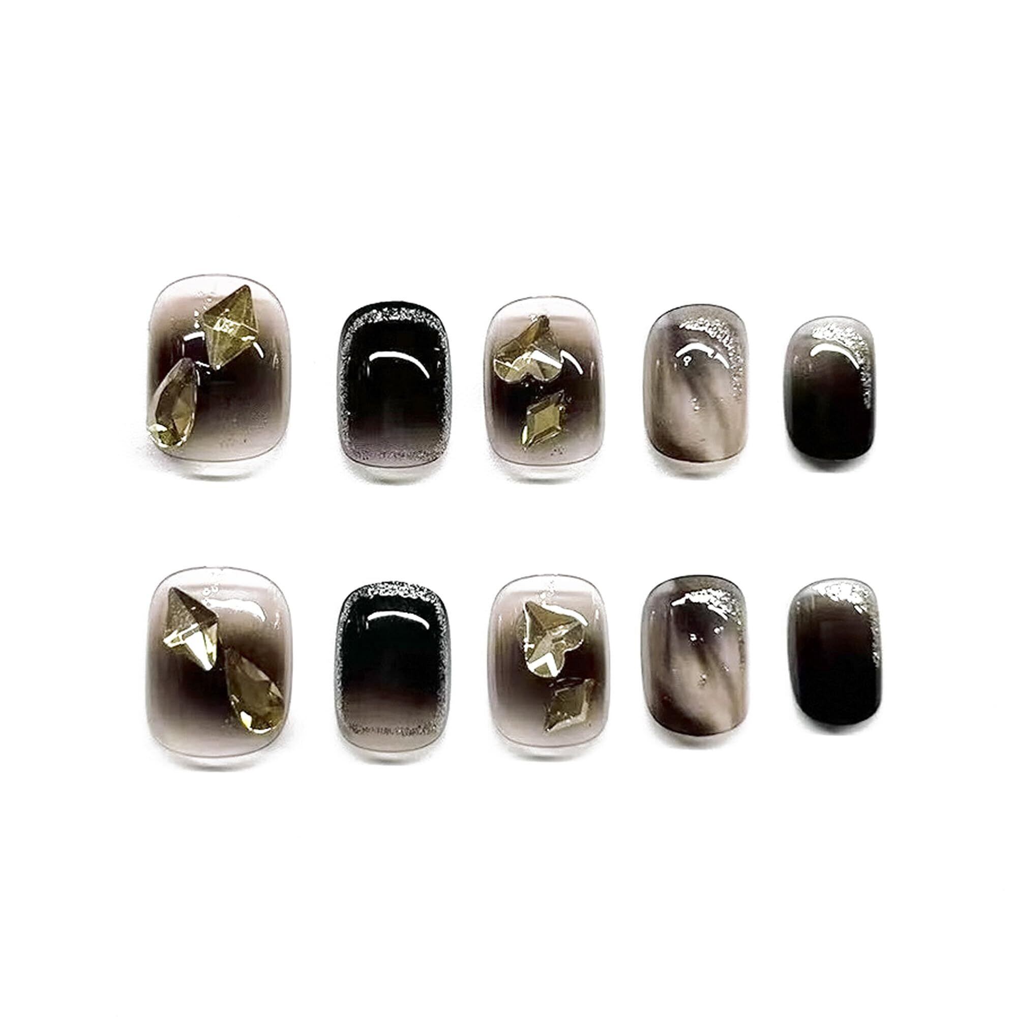 【AAGWW】 ネイルチップ ベリーショート 付け爪 短い 成人式 マット つけづめ つけ爪 付け爪 ネイルちっぷ かわいい 美甲 用品 工房 糊デザイン(製品の内容:24枚ネイルアート +糊 色:シャンパンクリスタル、ネイルアートの道具セットを贈る)