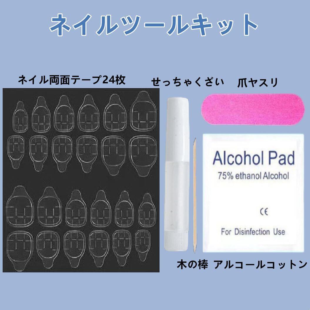 【パッケージリスト】ネイルチップ24枚(12サイズ)、液体のり*1個、ゼリー接着剤24粒*1枚、クリーニングパック*1パック、爪やすり*1本、爪抜き棒*1