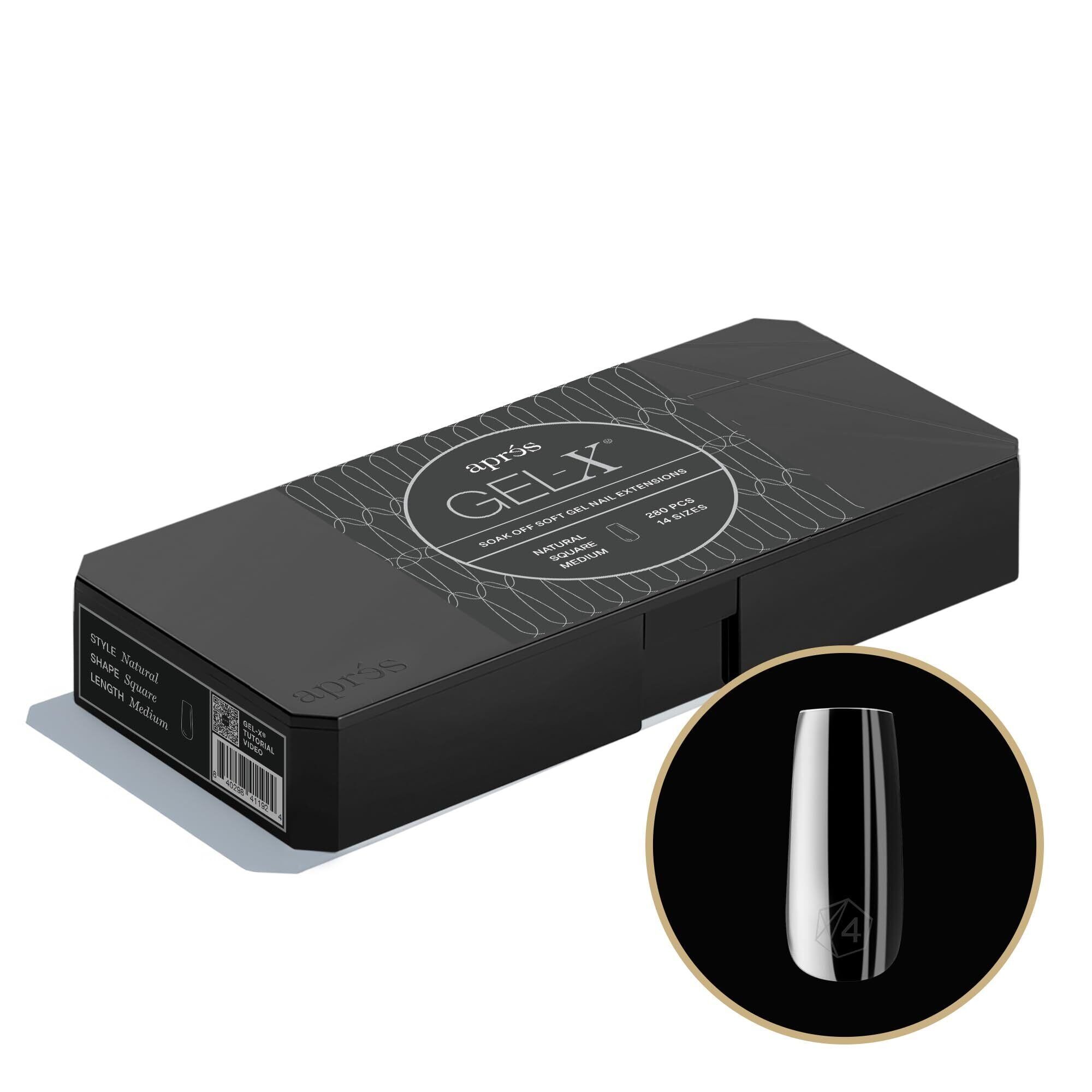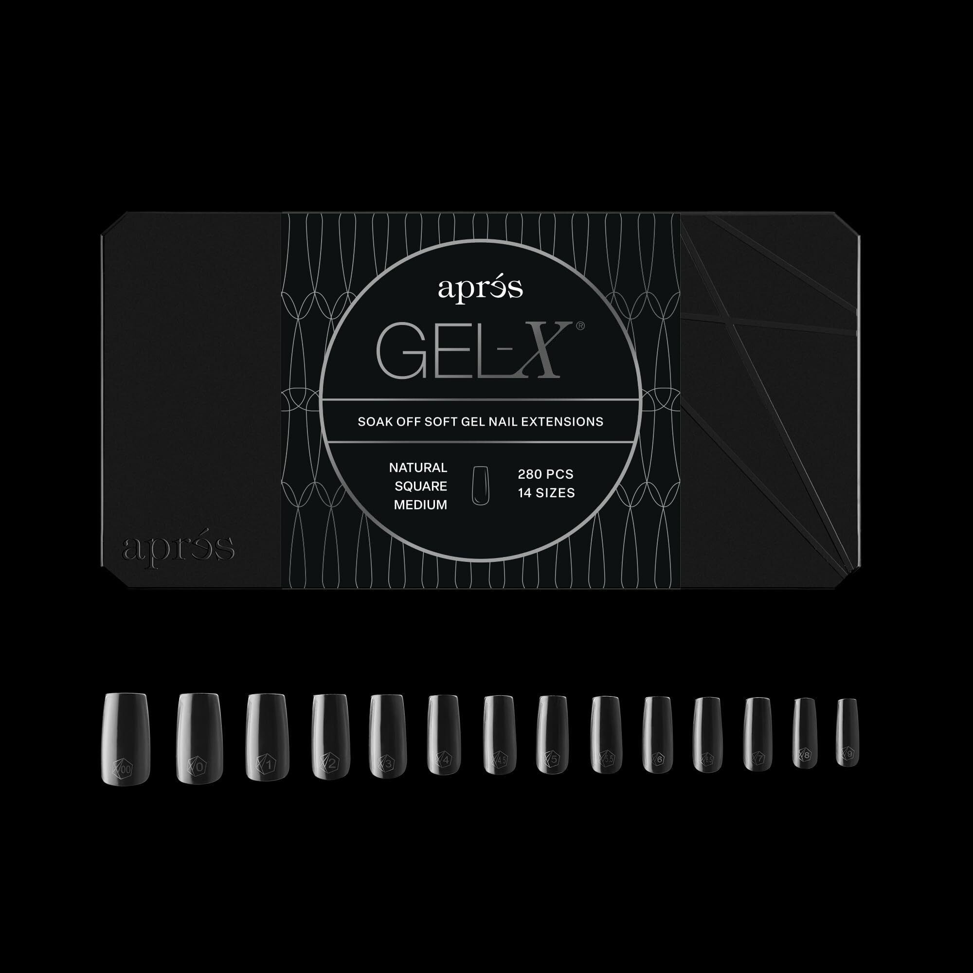 APRÉS Gel-X® スクエア型ネイルチップセット|280枚入り Gel-X ソフトジェルチップ|全14サイズ(00〜9番)ハーフサイズ付き (ナチュラル スクエア ミディアム, 280 Count)