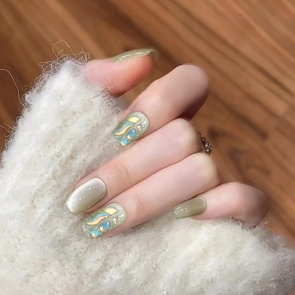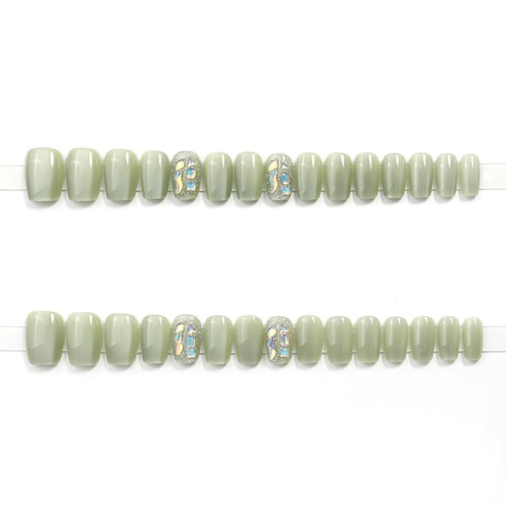ネイルチップ 24枚セット くり返し使える ショート 大人かわいいミニマルデザイン オフィス/デート用 簡単リムーバブル 猫の目石ネイル シェル