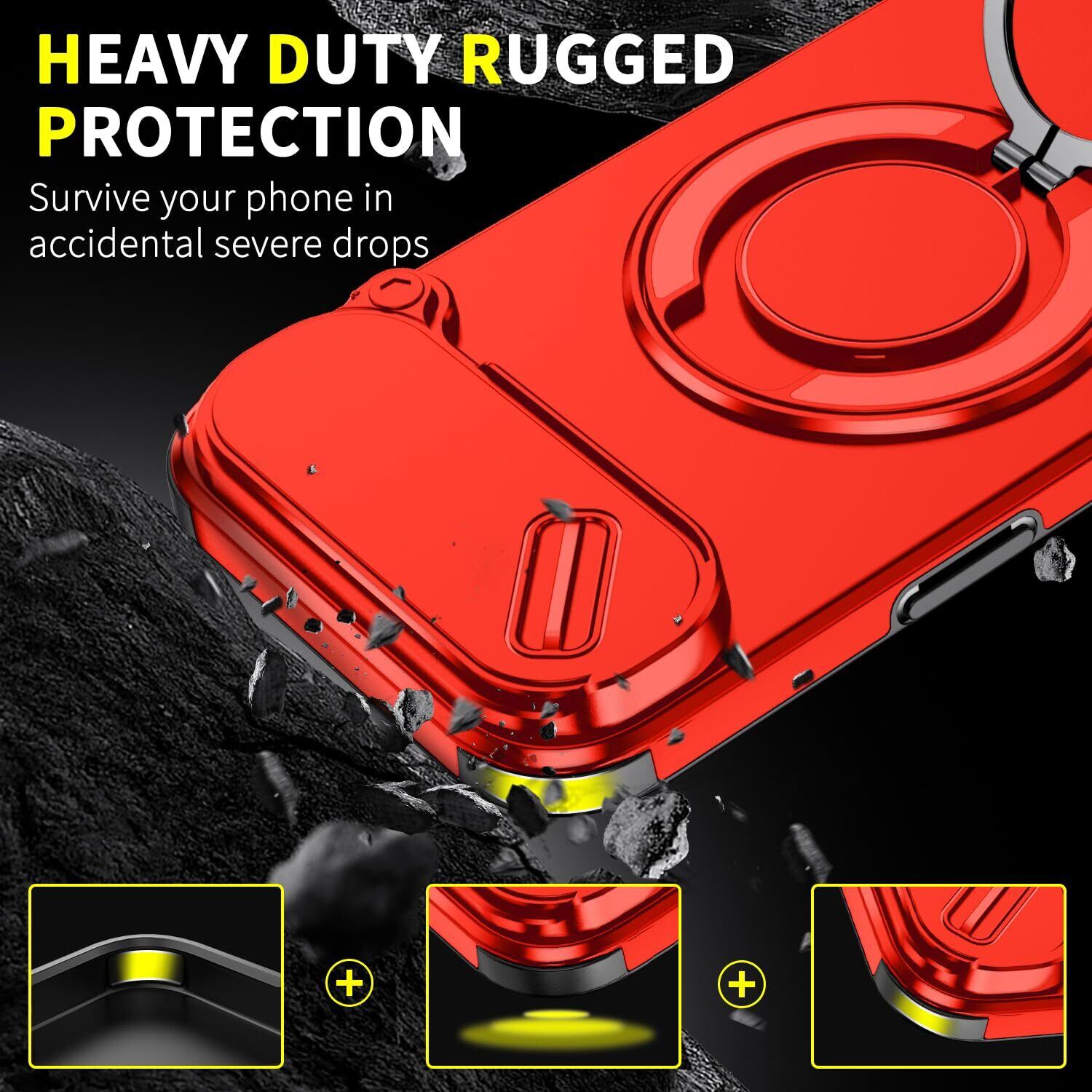 iPhone Air 用 ケース Magsafe対応 PC + TPU 二重保護 カメラの保護 落下防止 米軍MIL規格 耐衝撃 iPhone17air いphone17air 対応 カバー リング付き スタンド付き レッド 赤